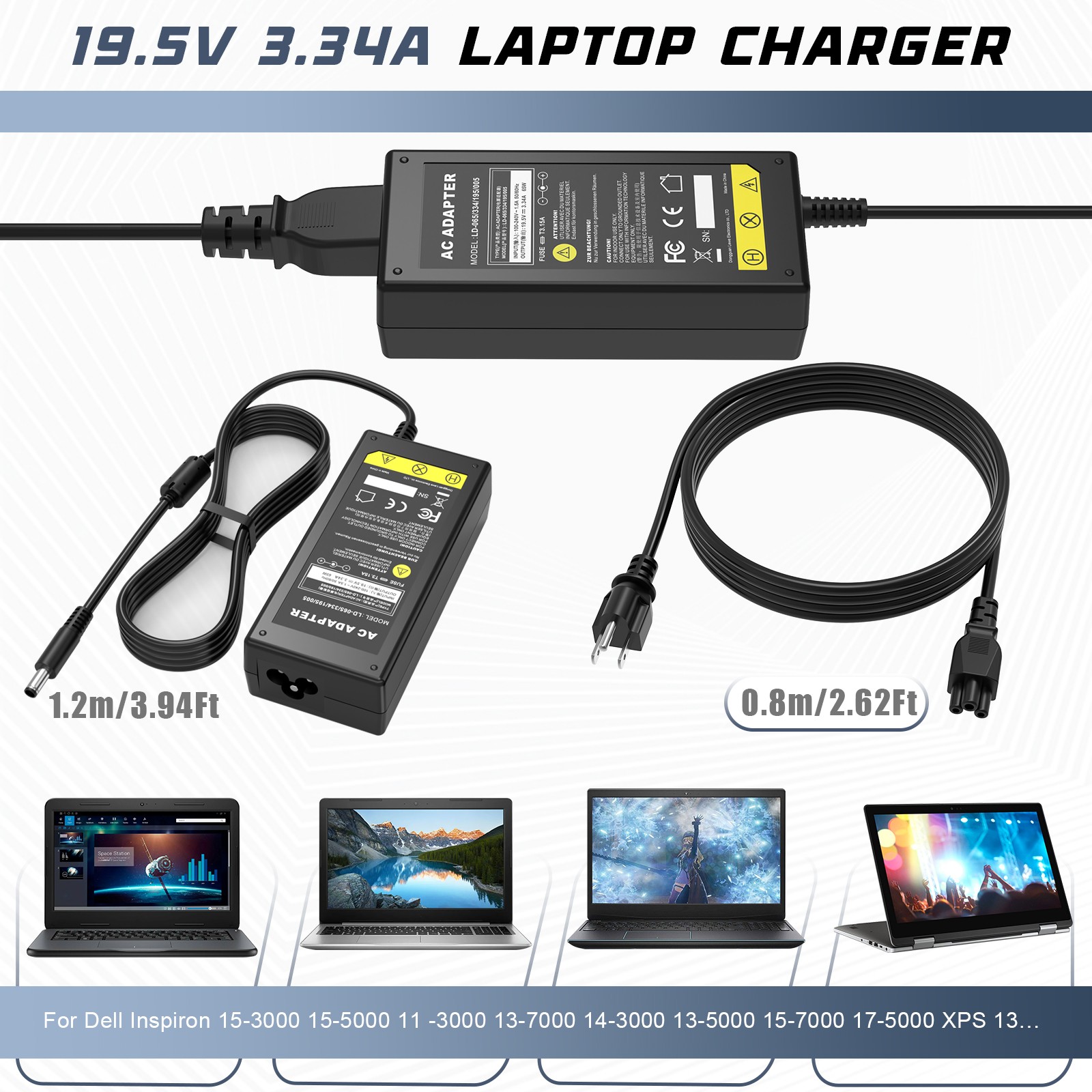 65W For Dell Inspiron 15 4.5mm Tip 19.5V 3.34A AC Adapter Charger Power Supply