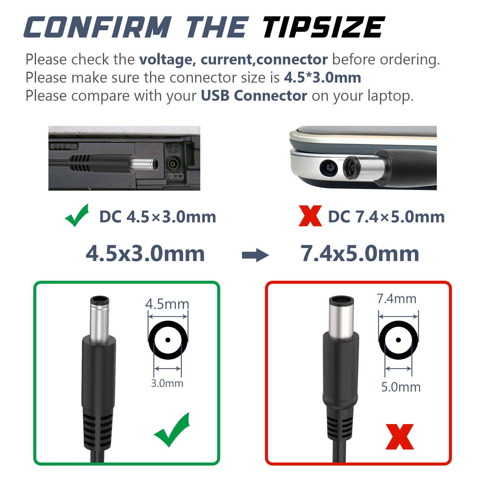 Connector size: 4.5*3.0mm