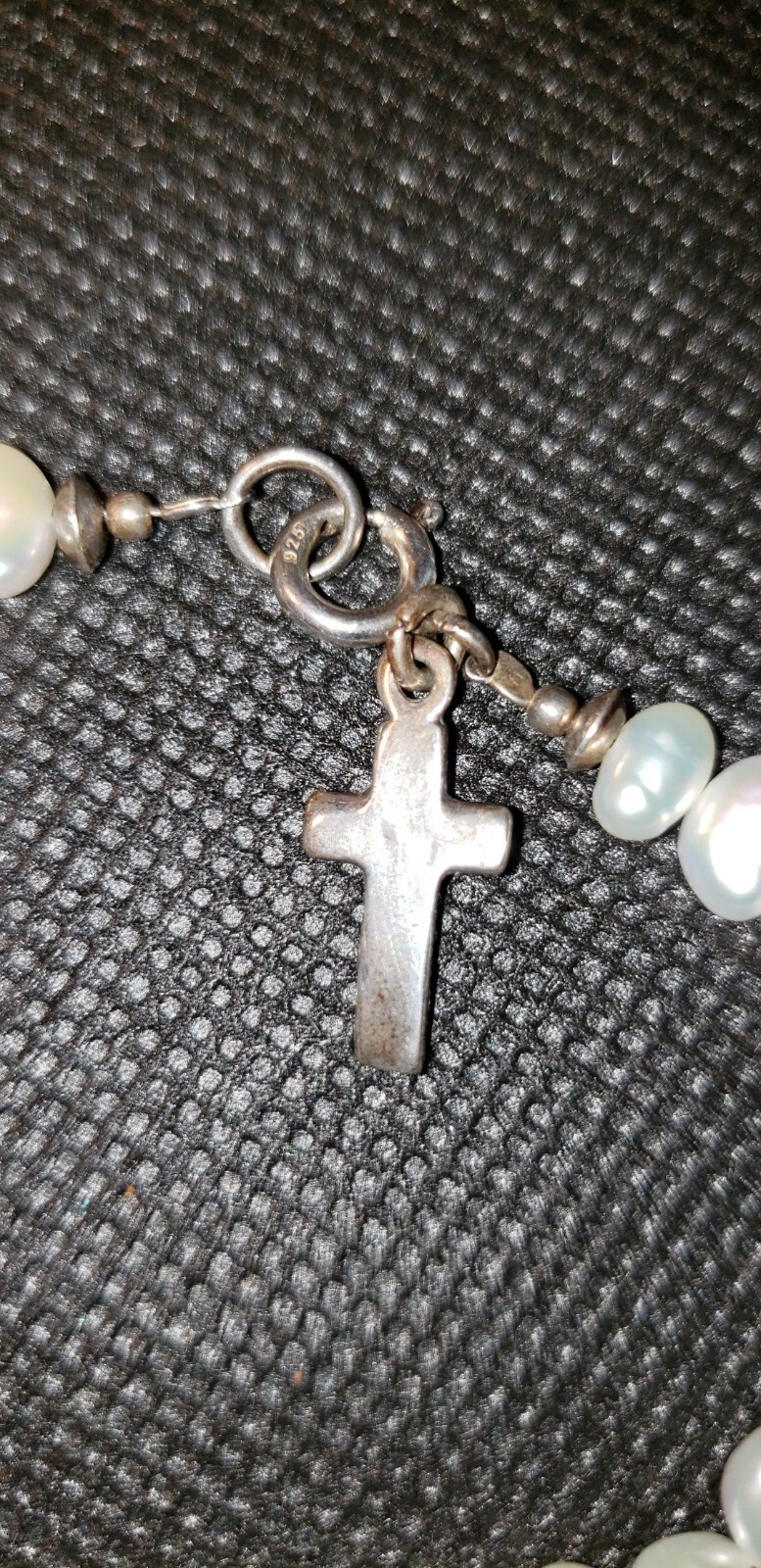 Girl's Genuine Freshwater Pearl Bracelet Sterling Cross Crystal Glass Bracelet