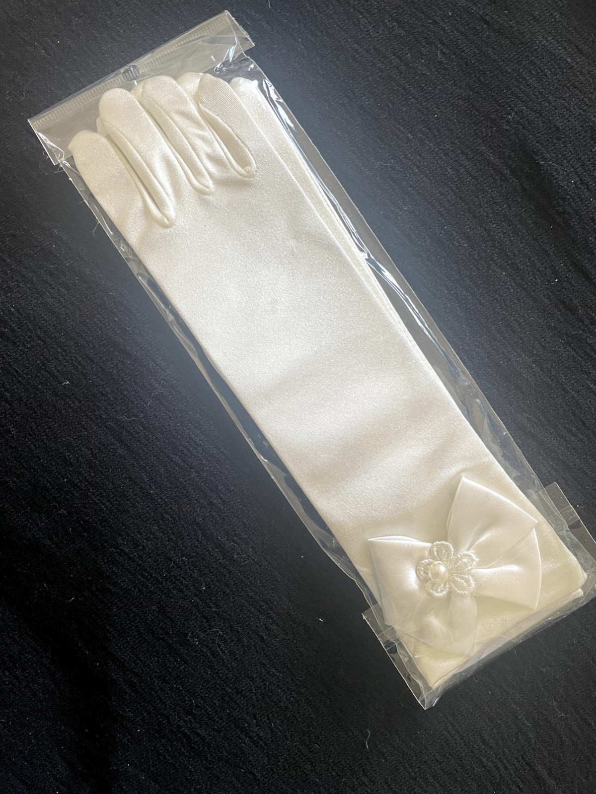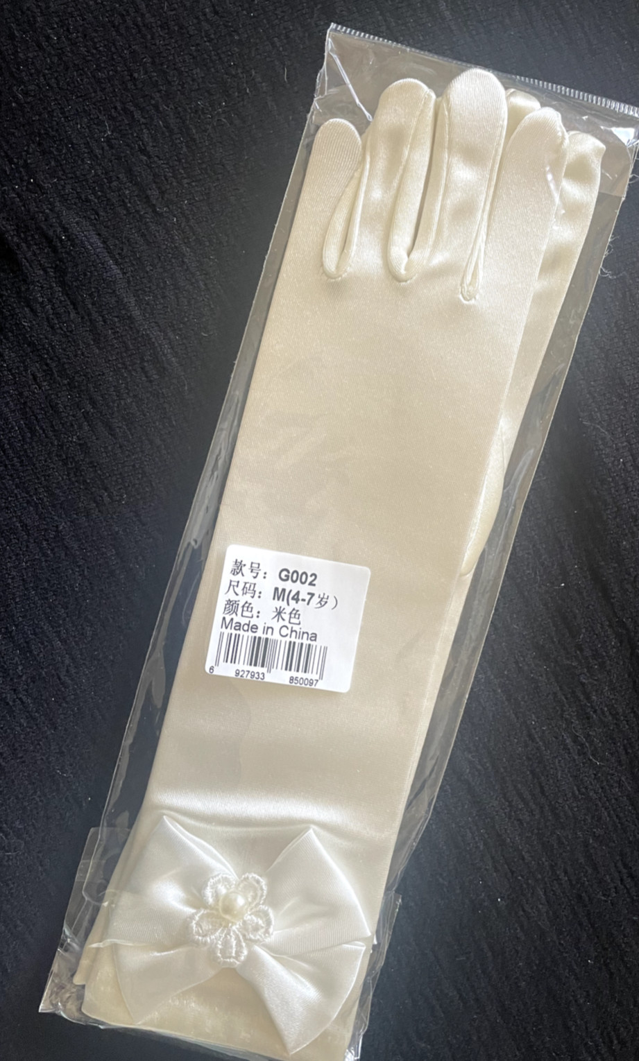 Girls Long White Gloves Formal/ Dress up Size M 4-7 , 1 Pair