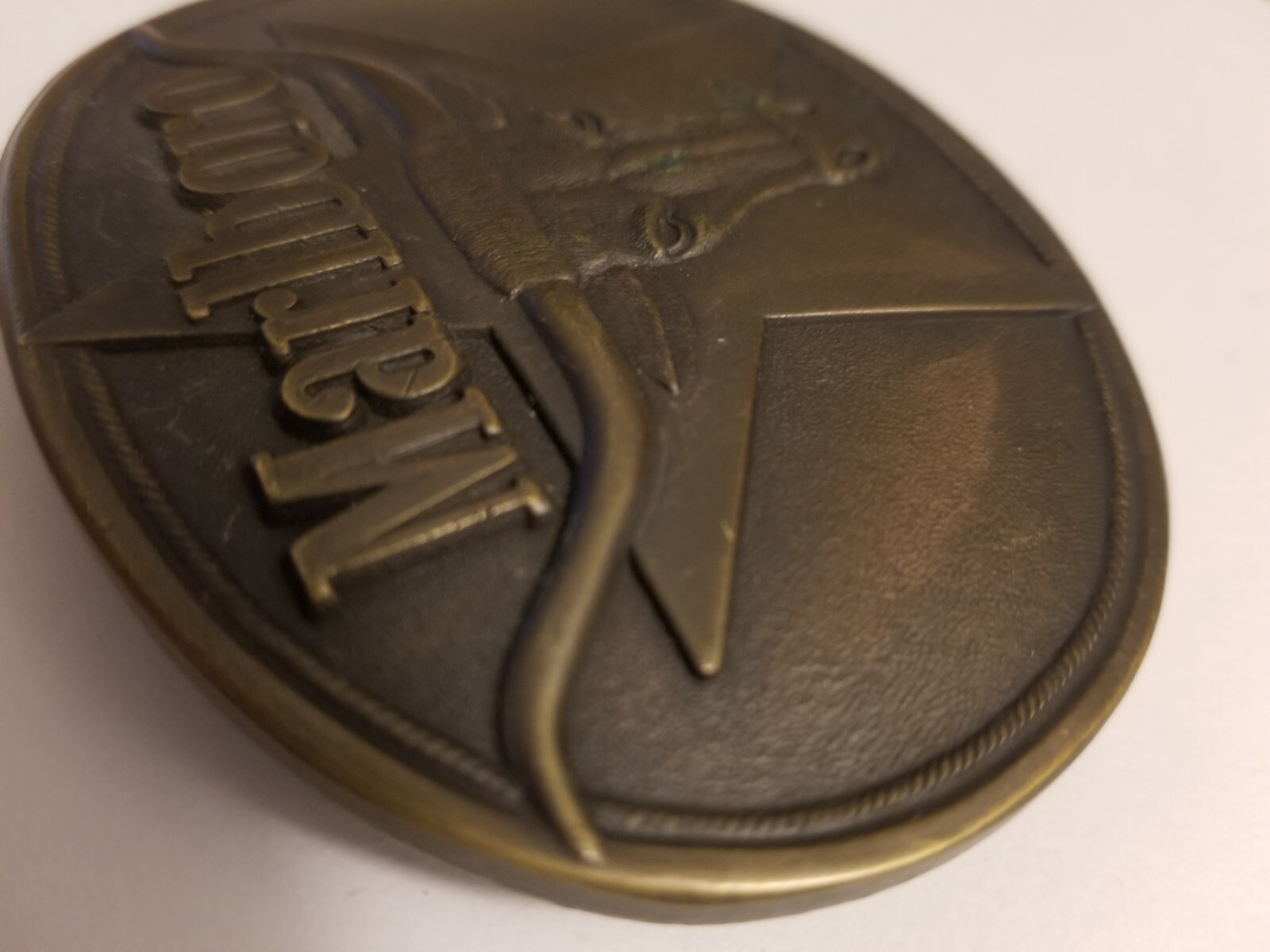 как выглядит Vintage 1987 Marlboro Solid Brass Belt Buckle Longhorn Philip Morris фото