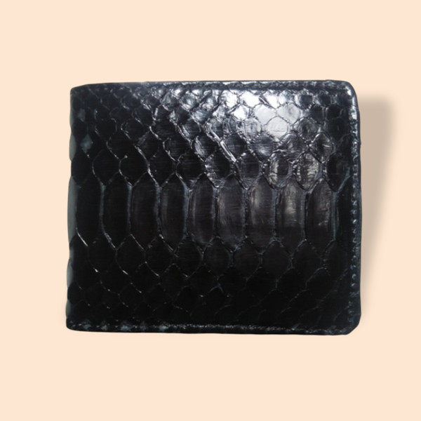 как выглядит 100 Genuine Snakeskin Leather Mens Bifold Wallet Black - FREE SHIPPING фото