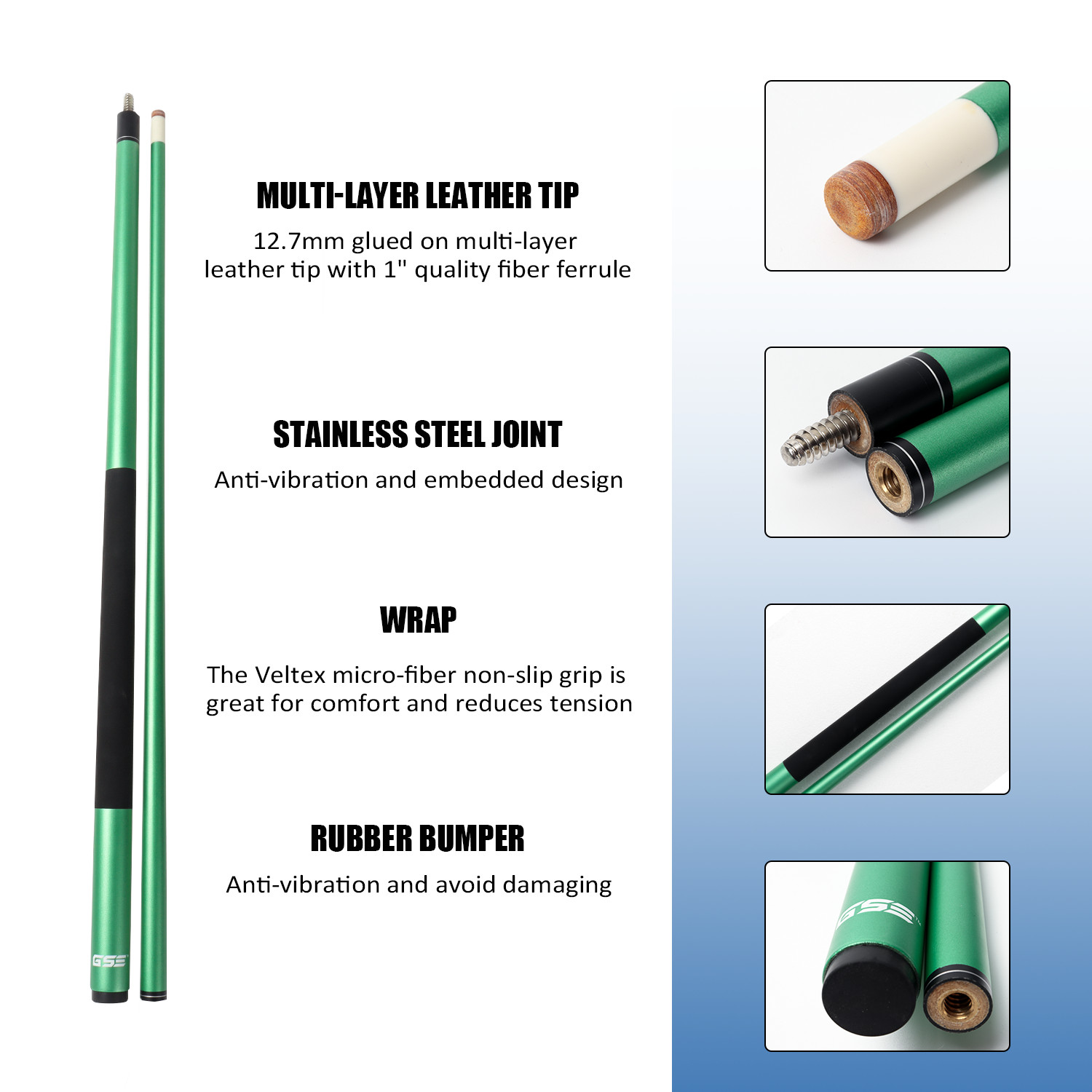 GSE Green 58 2-Piece Fiberglass Composite Billiard Pool Cue Stick for House/Bar