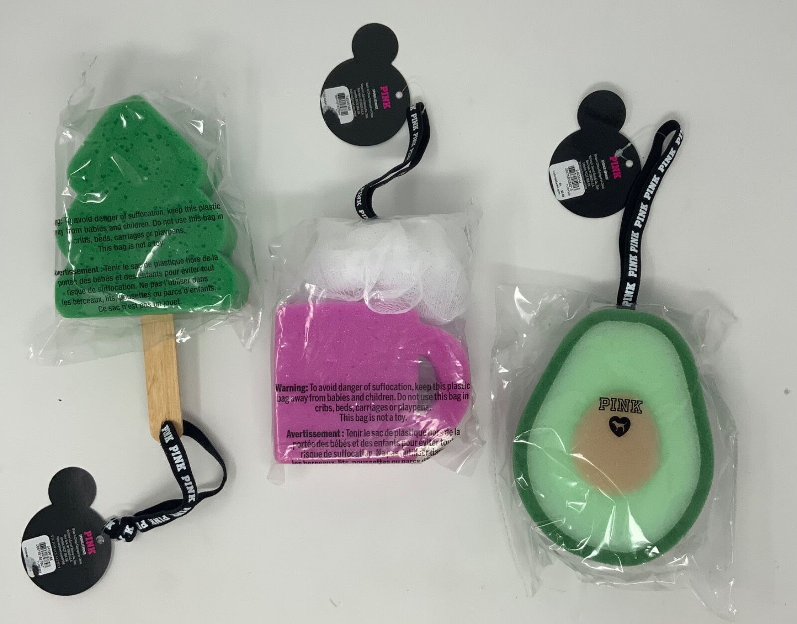 Lot of 3 Victoria's Secret PINK Loofa Sponge - Hot Bev, Avocado, Lucy Sprucey