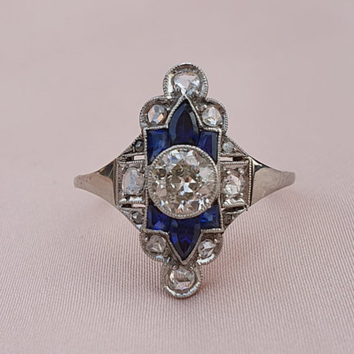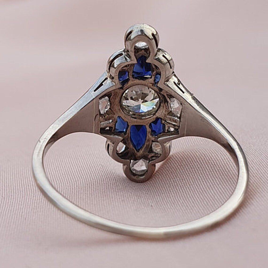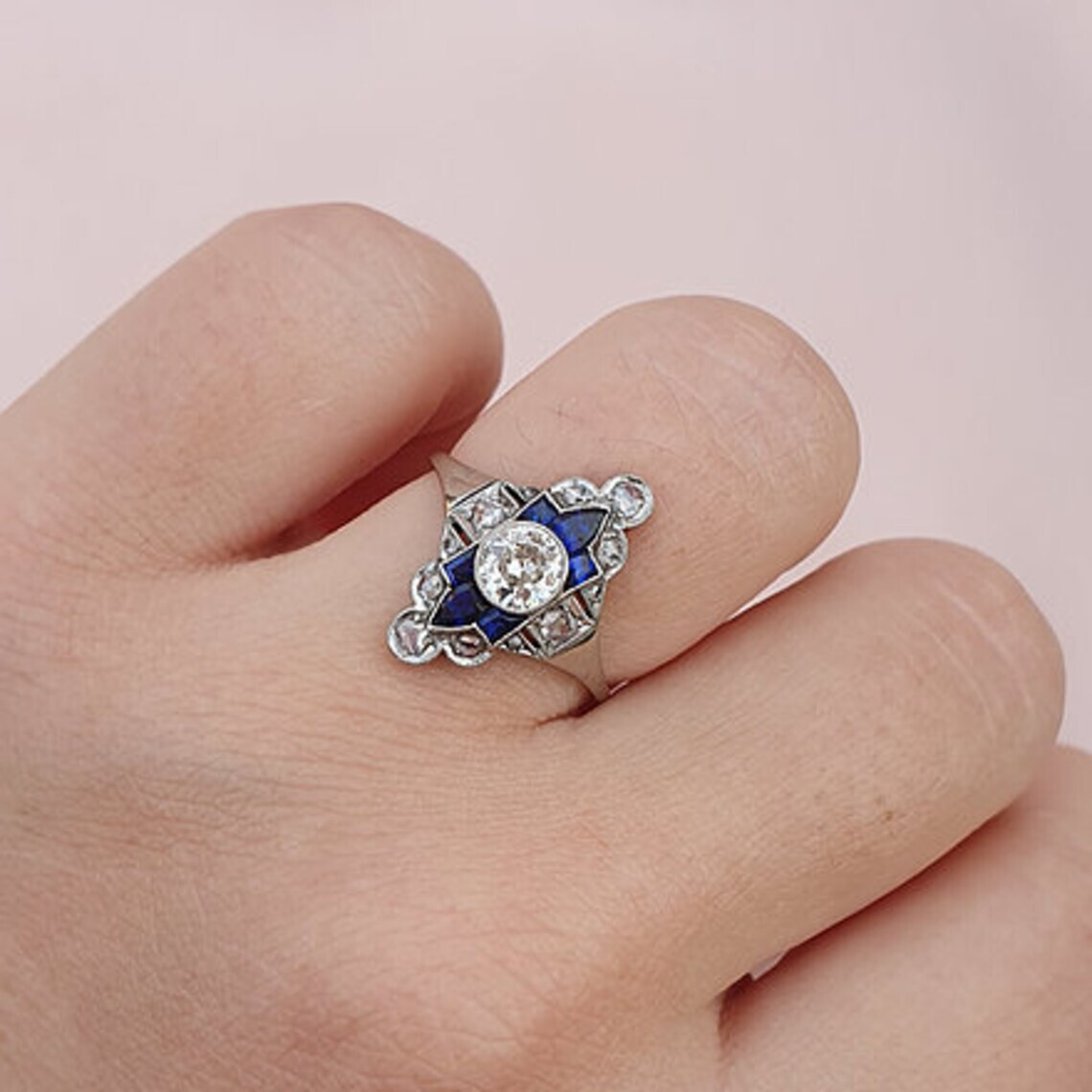 как выглядит Antique Art Deco 1.2Ct Round Cut CZ Blue Sapphire Engagement Ring In 925 Silver фото