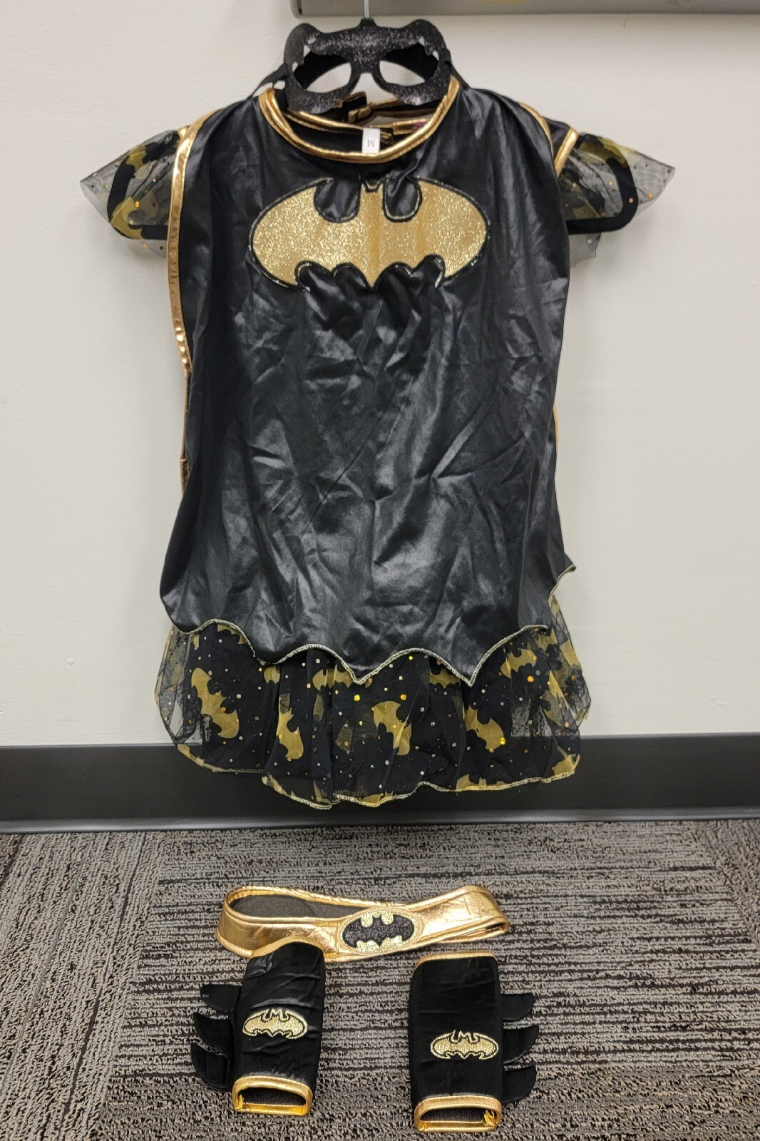как выглядит 2017 Batgirl Costume Dress with Cape and Eye Mask Size Medium 7-8 фото