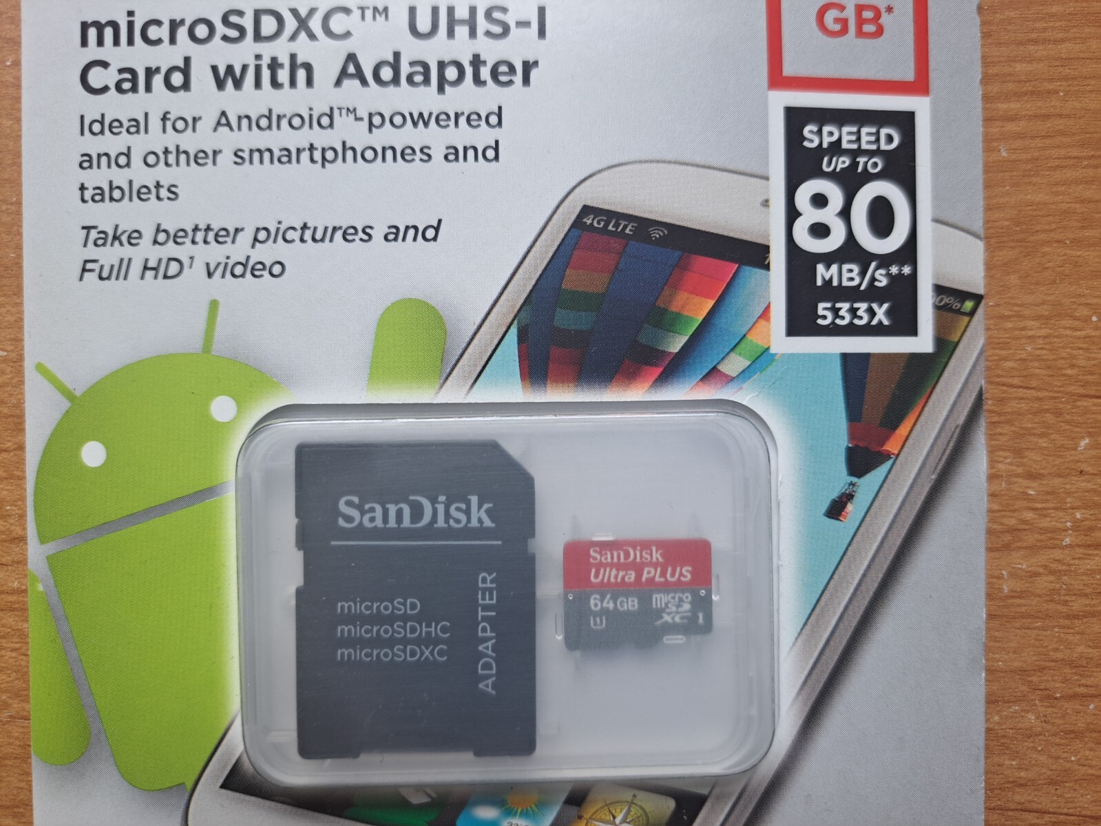 SanDisk Ultra Plus 64GB microSDXC UHS-I Memory Card w Adapter SDSQUSC-064G-AW46A