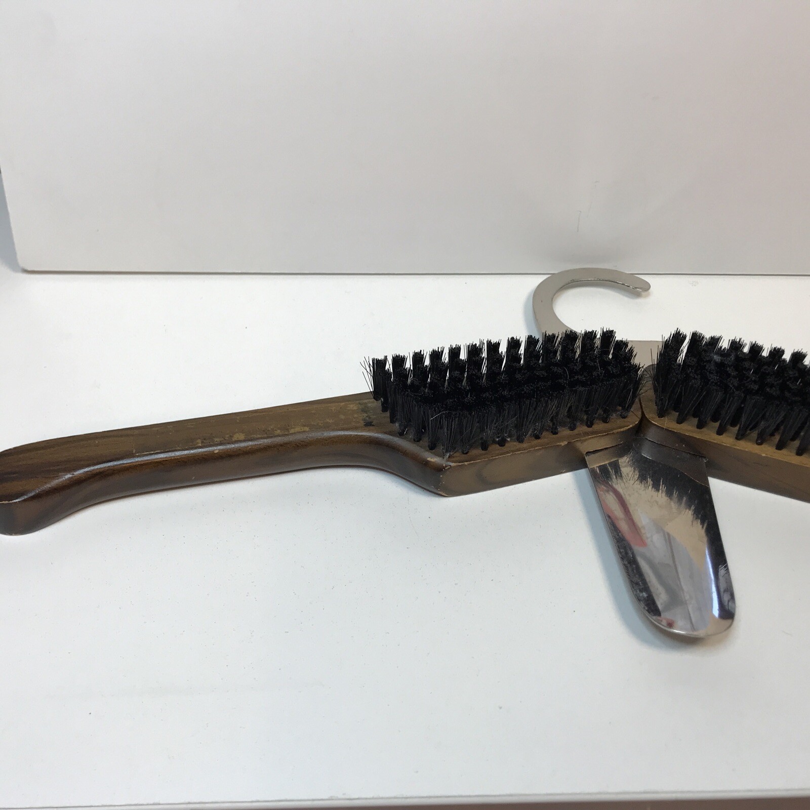 как выглядит Vintage Wooden clothes brush converts to Travel Hanger фото