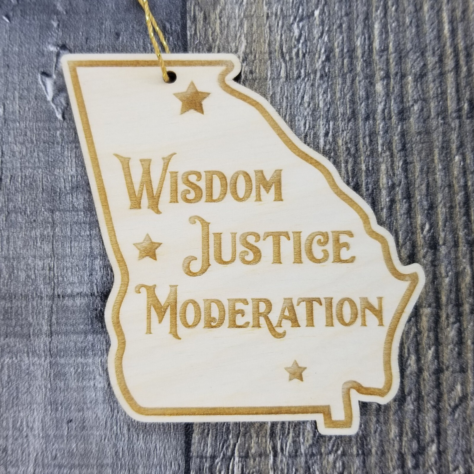 Georgia Ornament - GA State Shape with State Motto - Handmade Wood Ornament Made