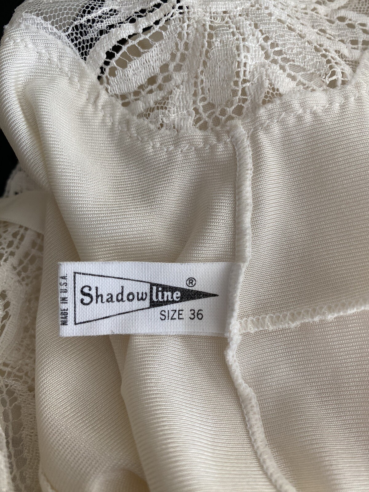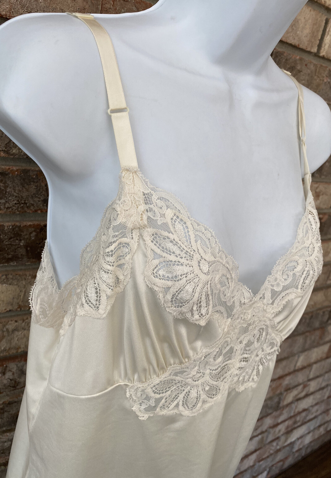 как выглядит Vintage SHADOWLINE Ivory Camisole Lingerie Top w Lace Adj Straps Size 36 фото