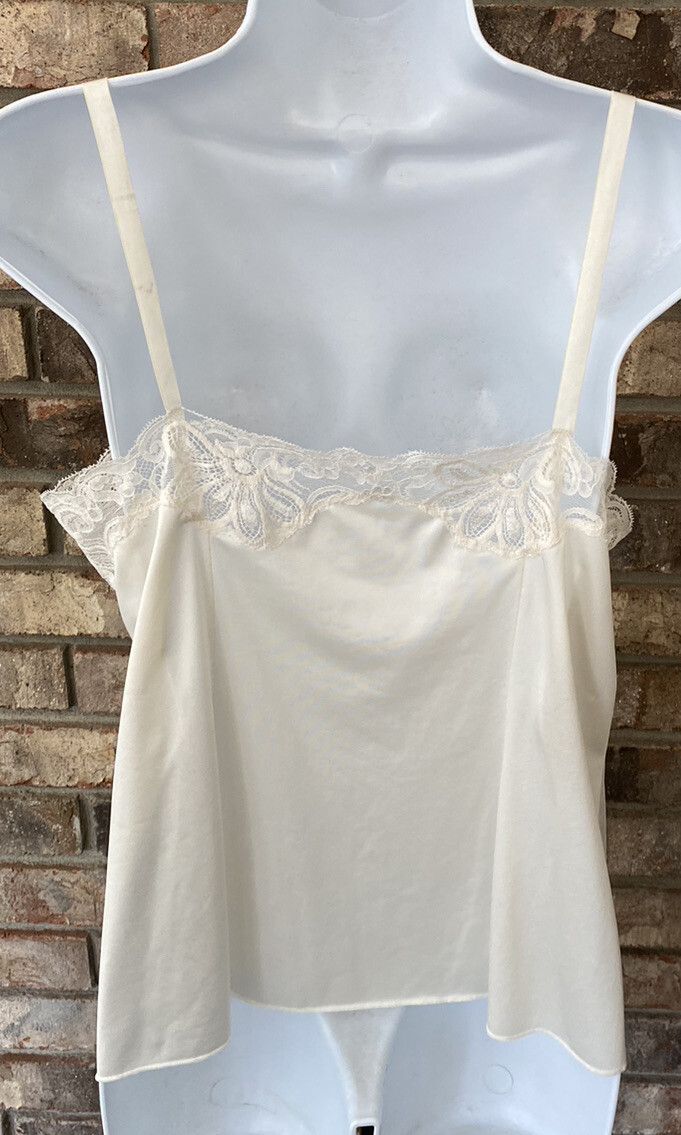 Vintage SHADOWLINE Ivory Camisole Lingerie Top w Lace Adj Straps Size 36