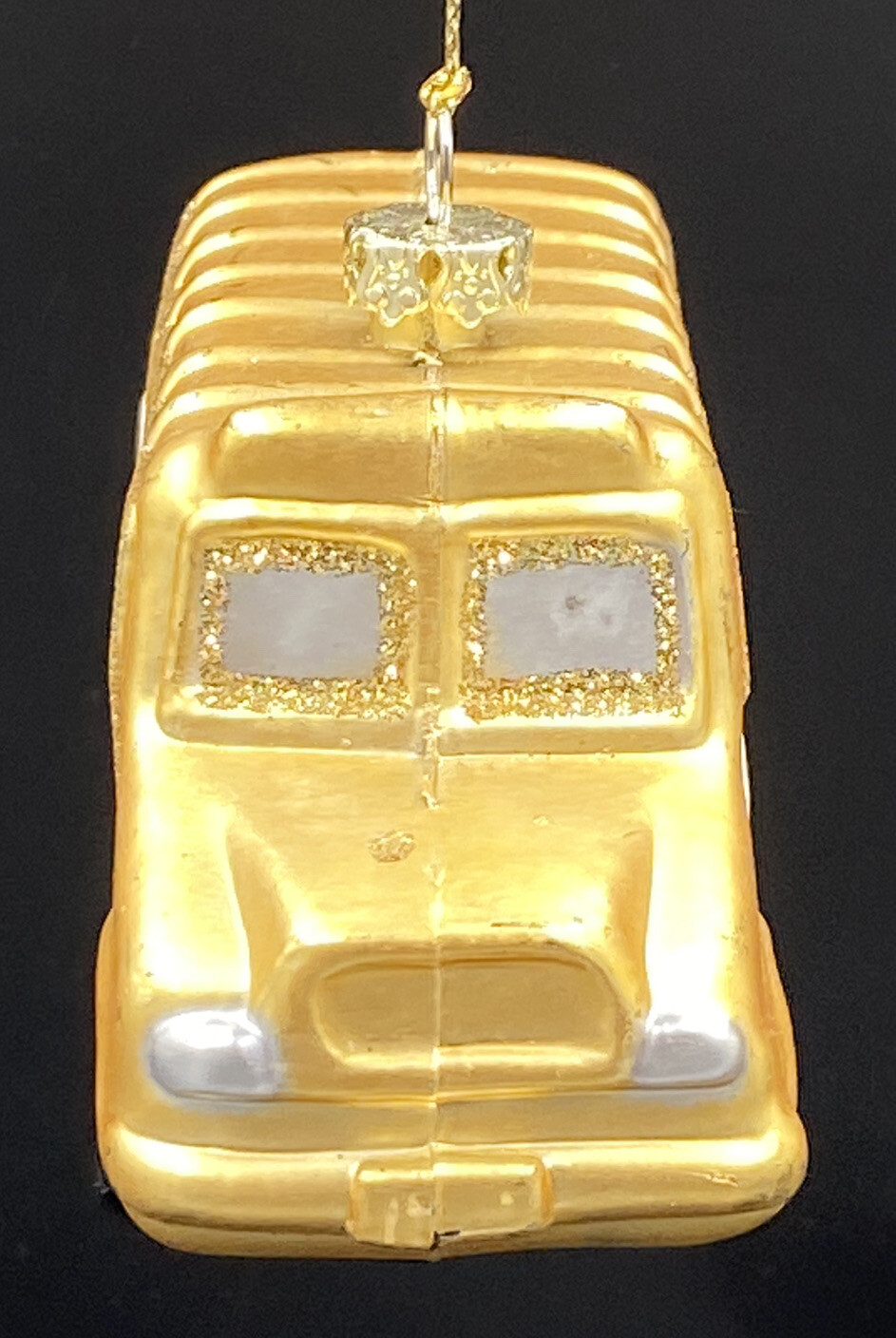 • Sparkly Glitter Yellow School Bus Glass Ornament Christmas Childhood Memories