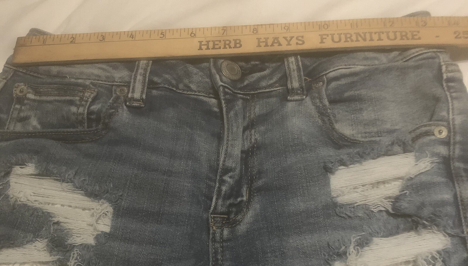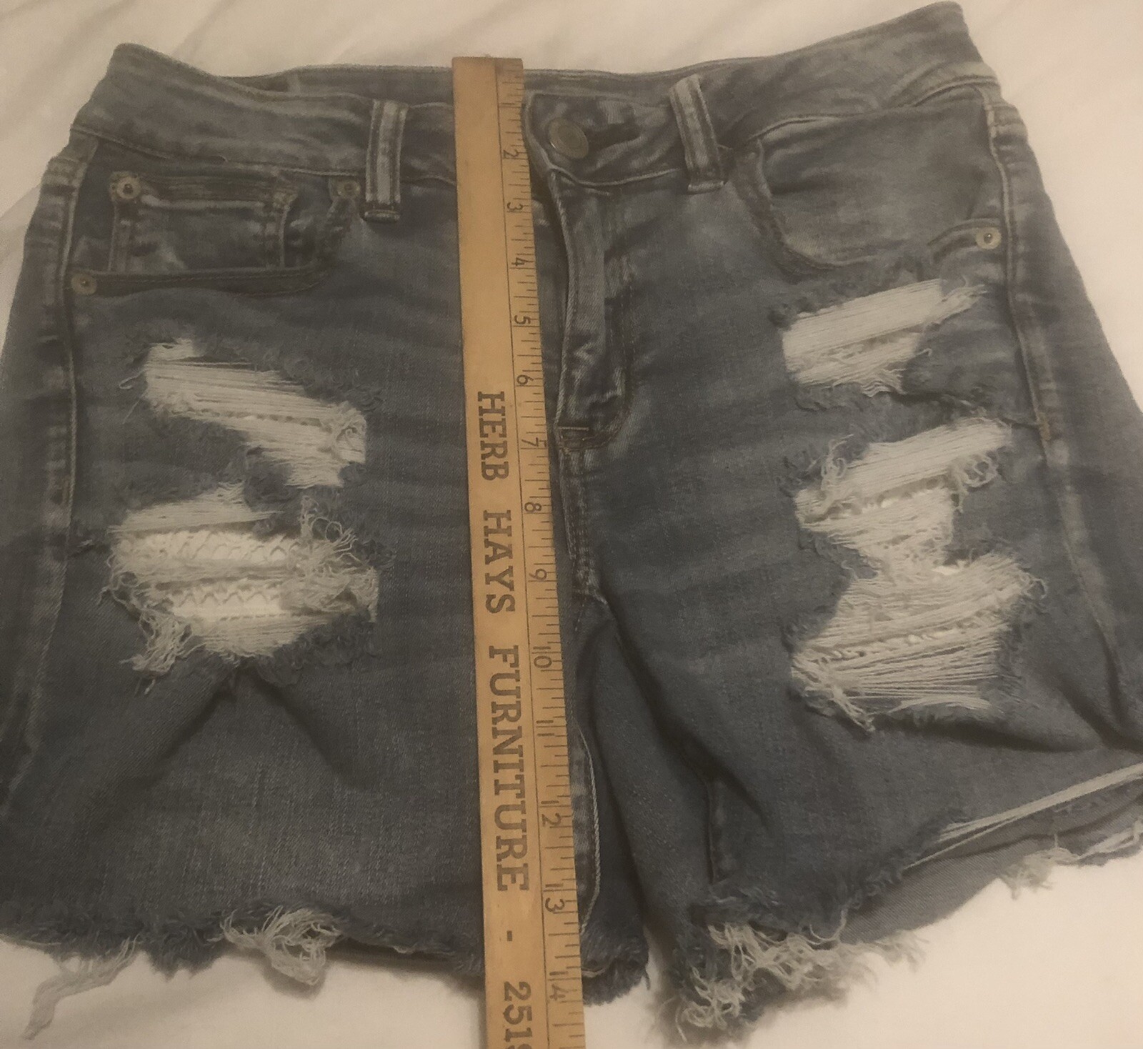как выглядит American Eagle Next Level Stretch Womens 8 Blue Cut Off Jean Shorts фото