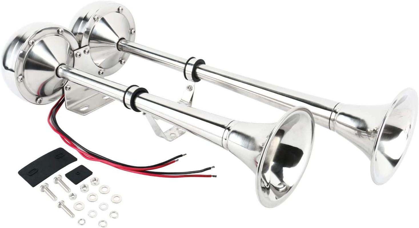 Amarine Made 12V Marine Boat Horn 125Db Stainless Steel Dual Trumpet Horn For...