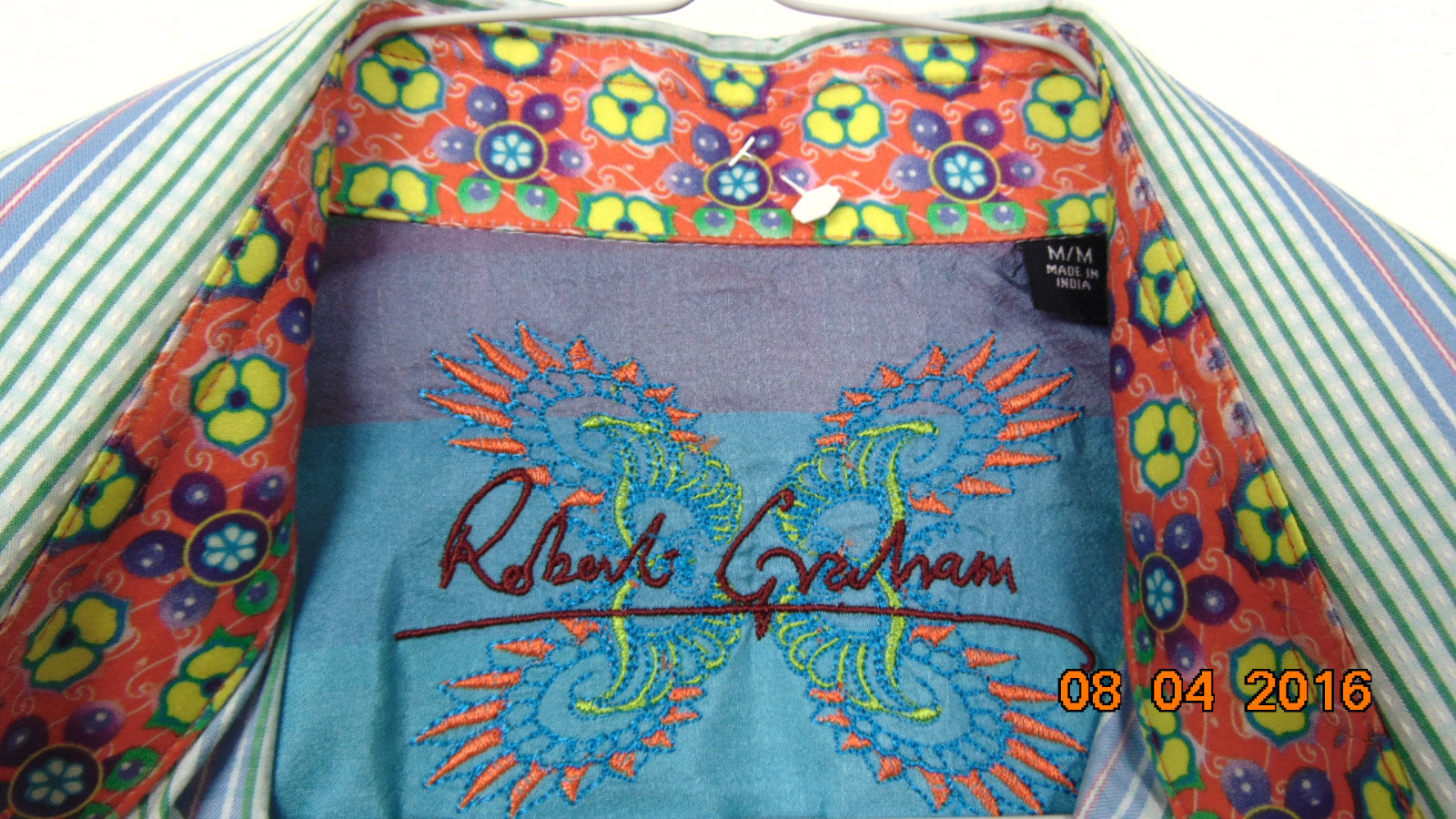 как выглядит Robert Graham Multicolor Striped Flip Cuff Long Sleeve Dress Shirt Mens Size M фото