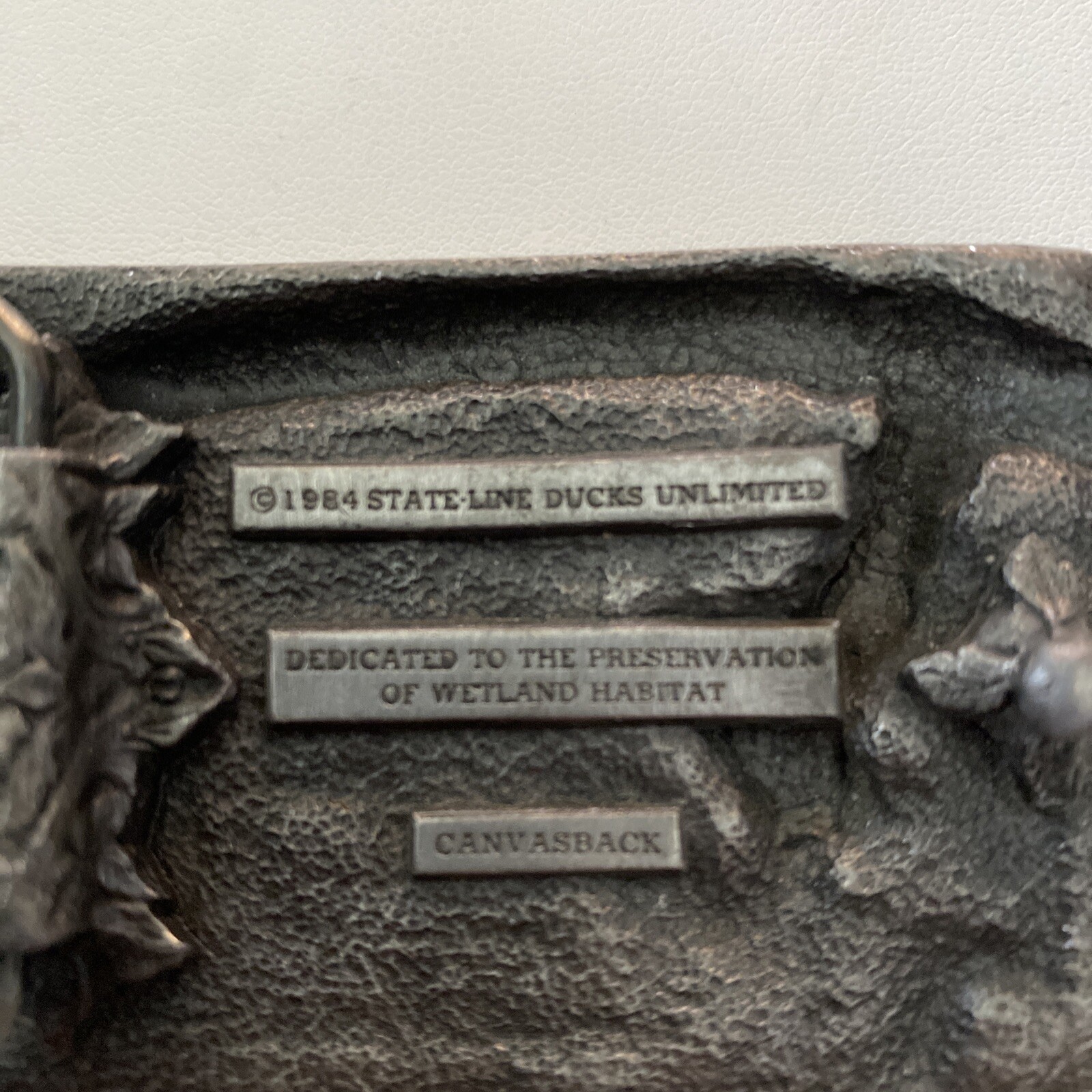 Vintage 1984 Ducks Unlimited State Line Canvasback Duck Hunting Belt Buckle