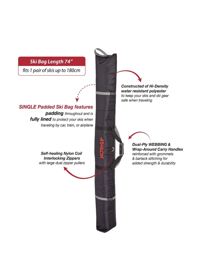 Athalon Single Ski Bag Padded Black Hold Skis Up To 180mc