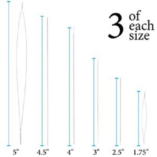 Needle Lengths: 1.75" , 2.5 ", 3", 4" , 4.5 " & 5 " 3 needles of each size