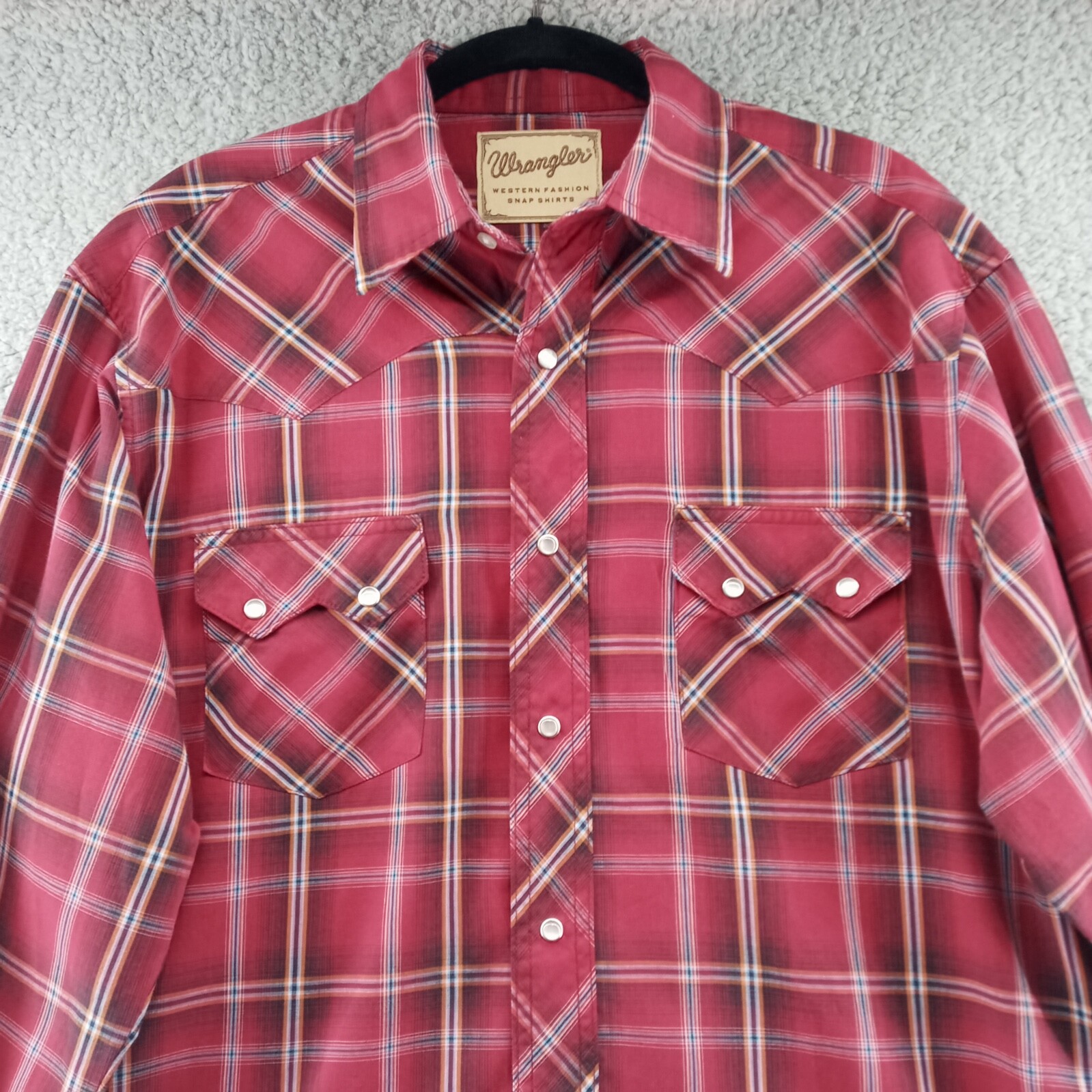 Wrangler Pearl Snap Men's Medium Red Plaid Western Dress Shirt Long Sleeve