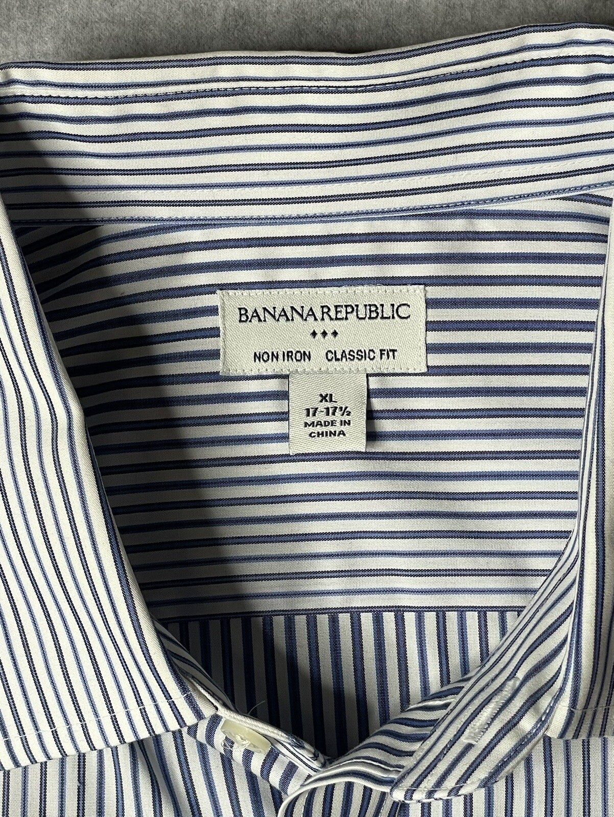 Banana Republic Mens Dress Shirt Size XL 17-17.5 Blue Striped Classic Fit