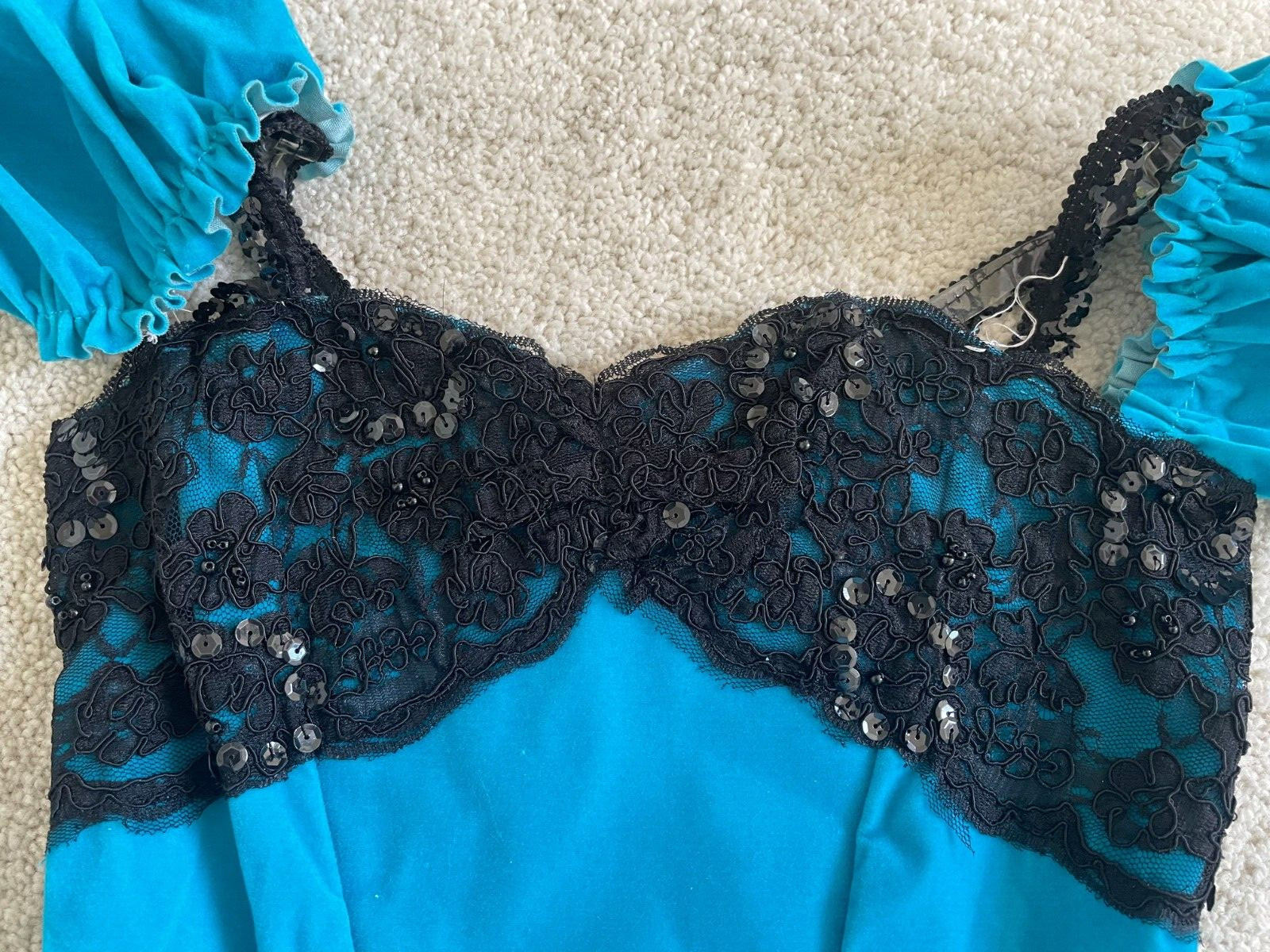 как выглядит Lot of 3. Turquoise with black lace dance costume. Large child size. фото