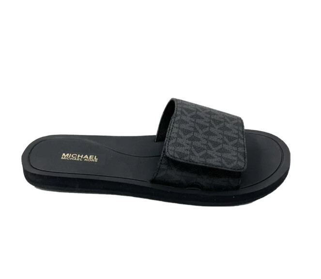 как выглядит Women MK Michael Kors Wade MK Logo Slide Sandals Mini MK Logo Black фото