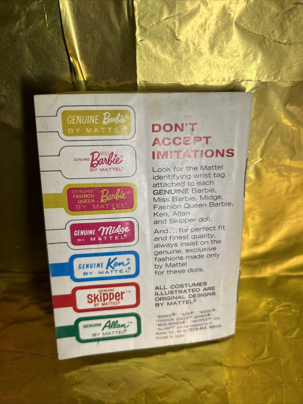 Character: Barbie, Ken, Midge, Allan, Skipper, Fashion Queen Barbie, Miss Barbie