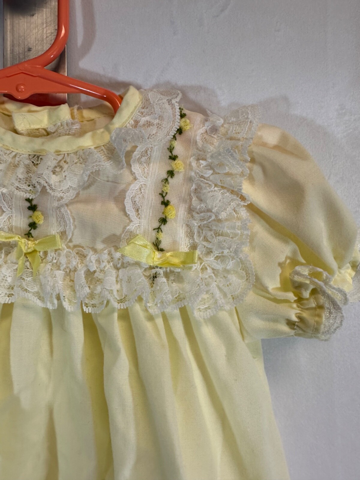 Vintage Alexis yellow ruffles lace bib dress size 9 Months Embroidered VTG D27