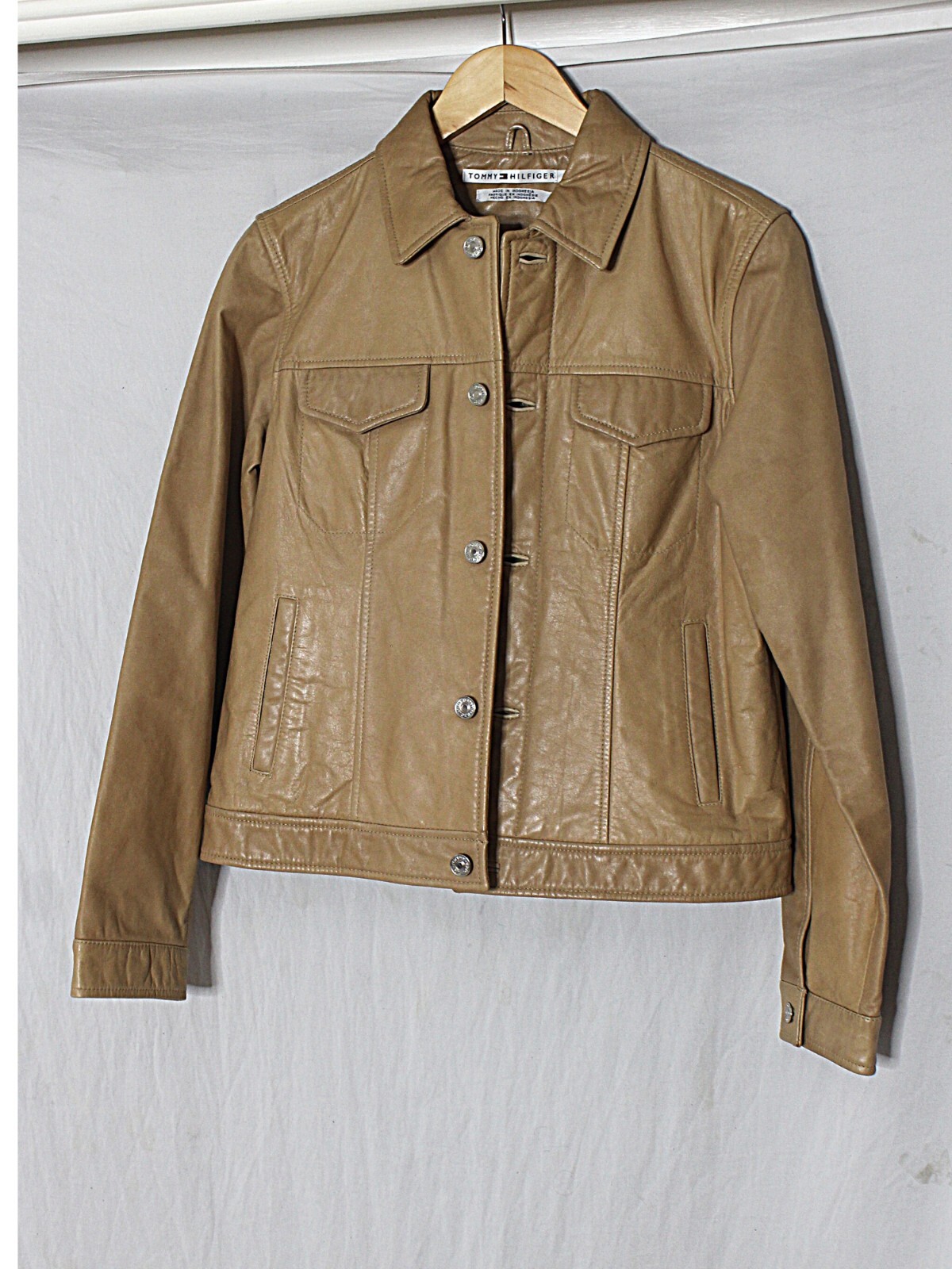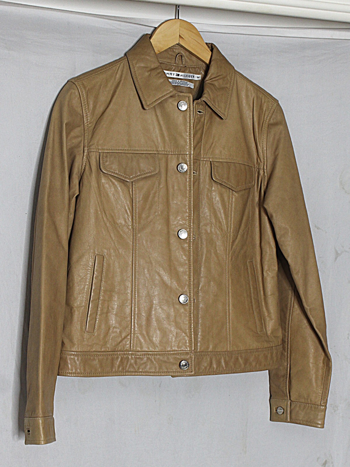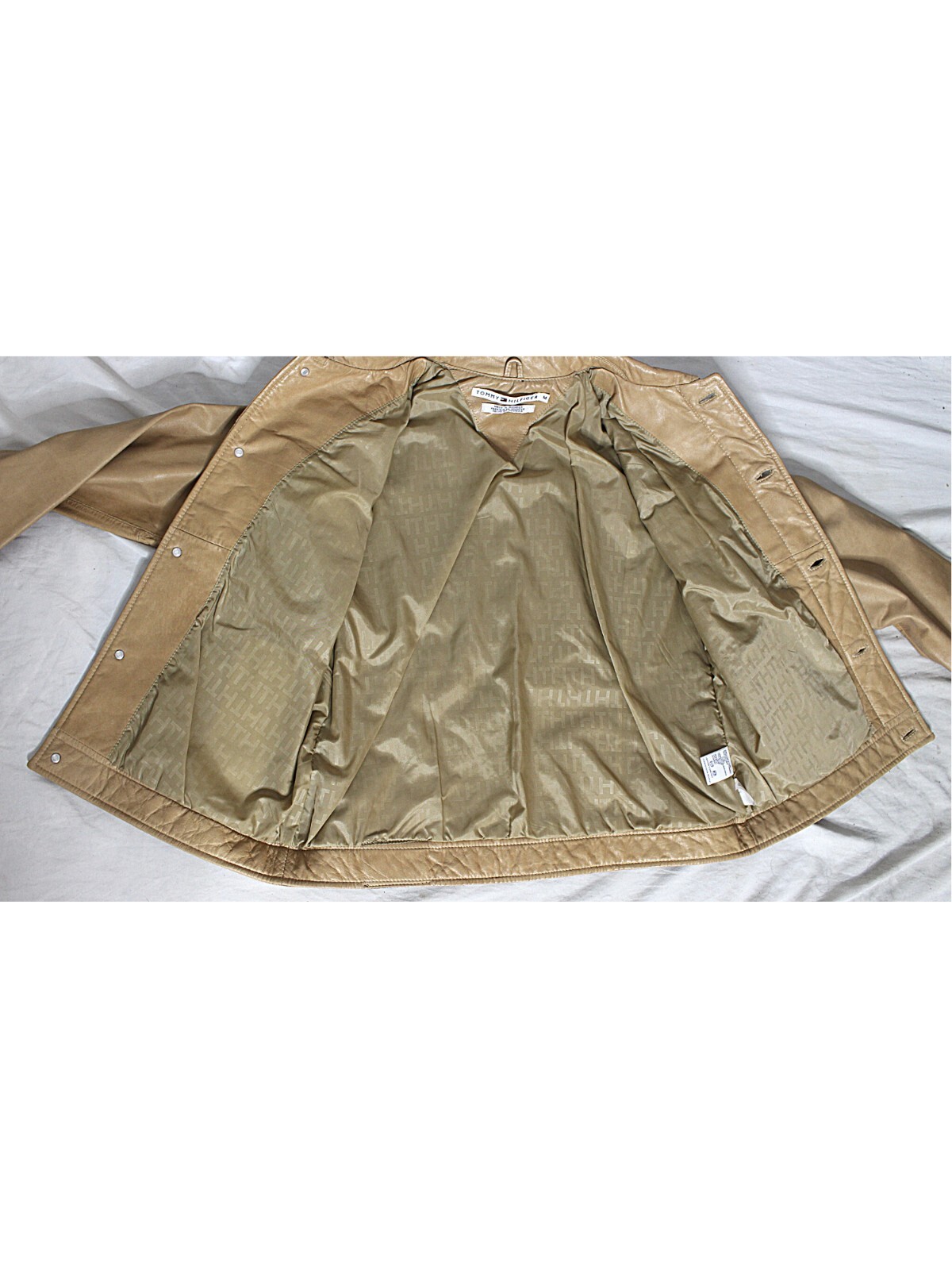 как выглядит Womens Leather Jacket Tan Brown Biker Tommy Hilfiger Real Medium Vintage 90s фото
