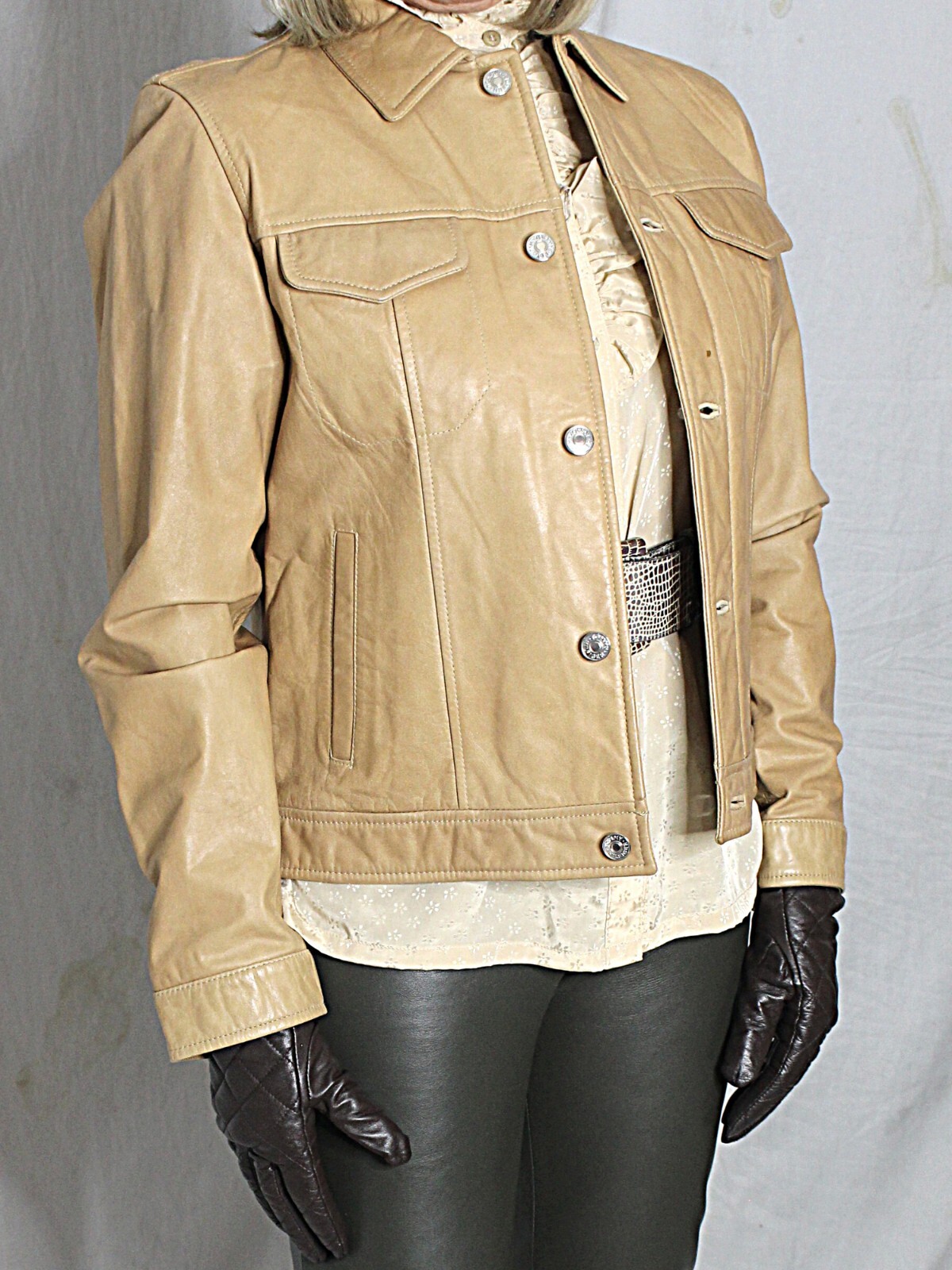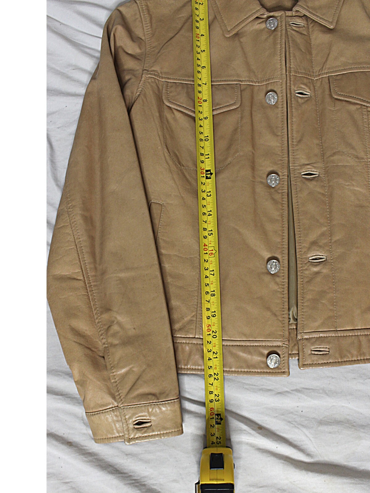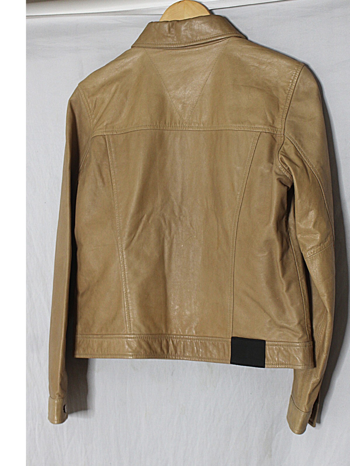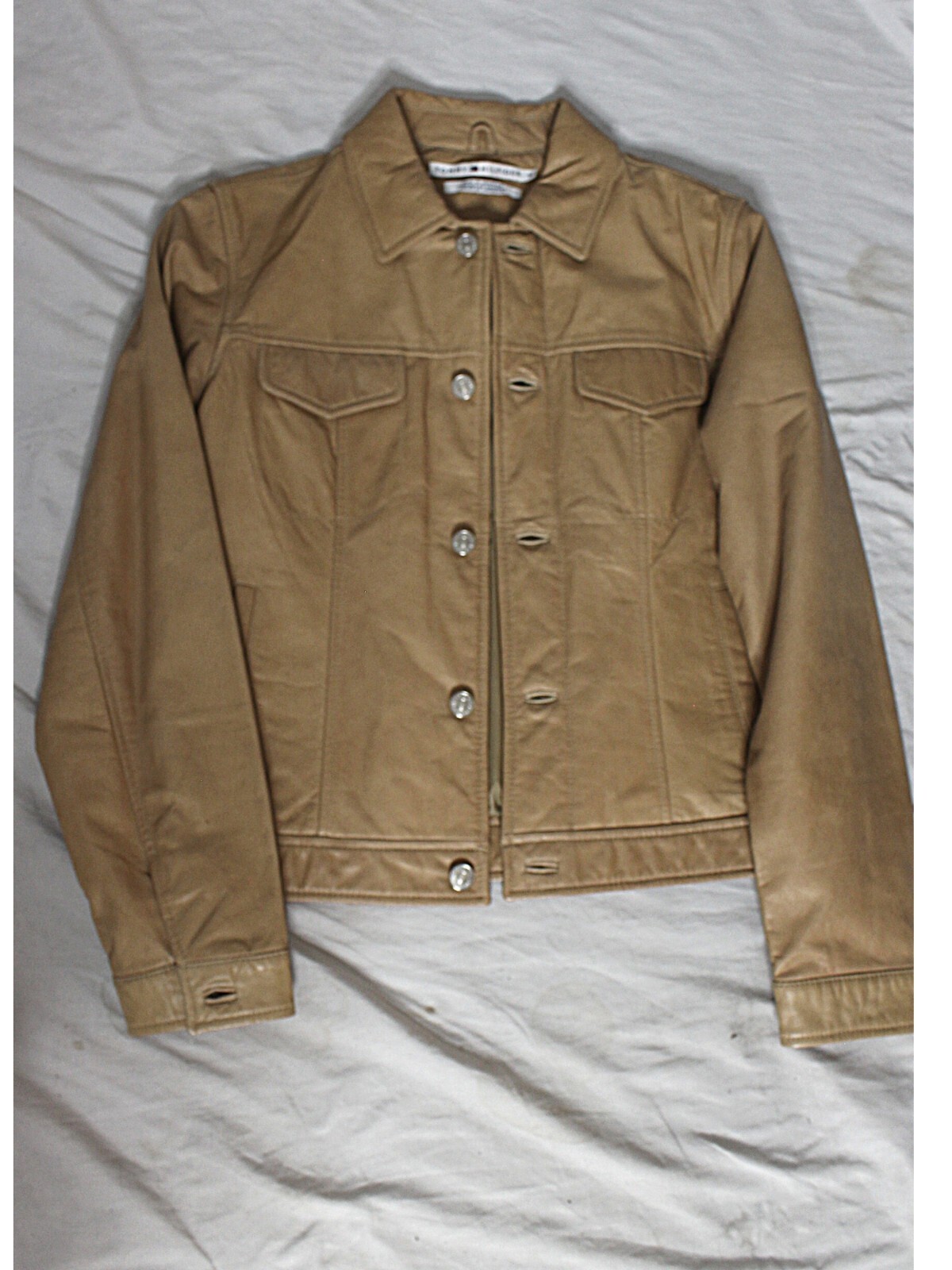 как выглядит Womens Leather Jacket Tan Brown Biker Tommy Hilfiger Real Medium Vintage 90s фото