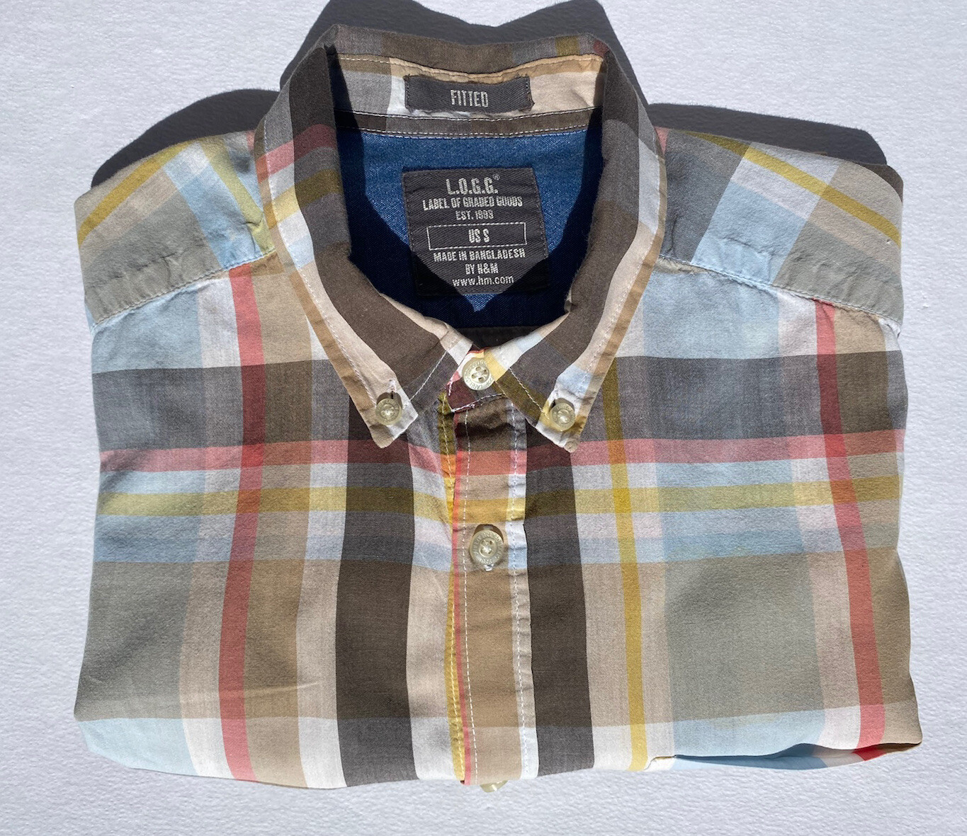 как выглядит HM Label Of Graded Shirt Plaid Long Sleeve Fitted Button Up Lightweight S фото