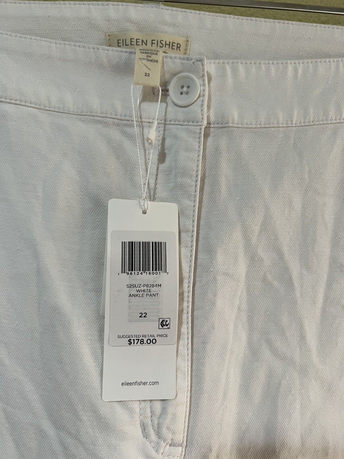 Eileen Fisher White Plus Sz 22 Organic Cotton Hemp Blend Ankle Pants Pockets p1