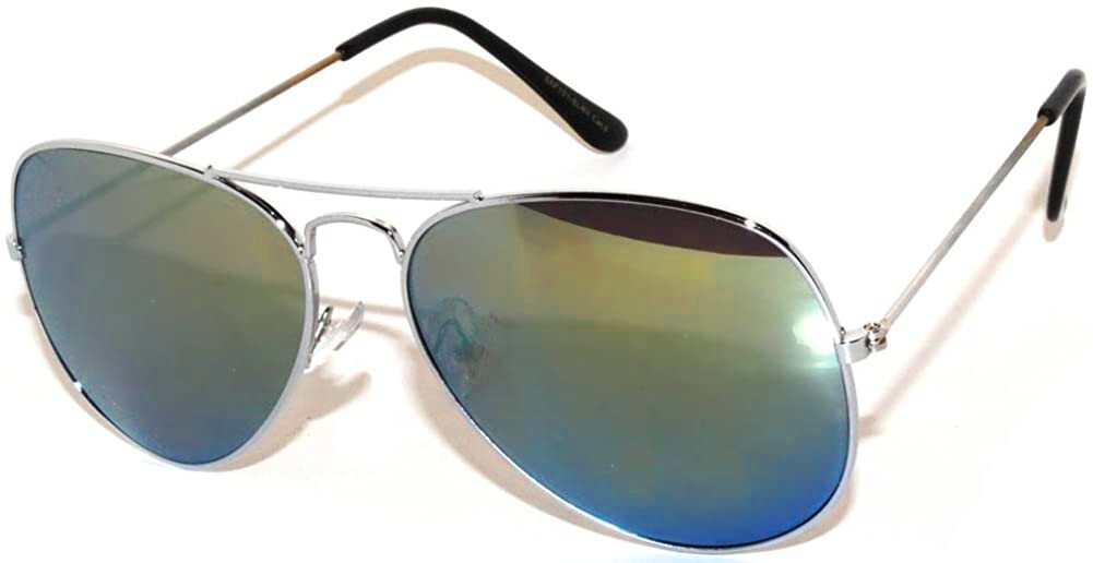 YELLOW MIRROR LENS AVIATOR STYLE SILVER METAL FRAME SUNGLASSES UV400