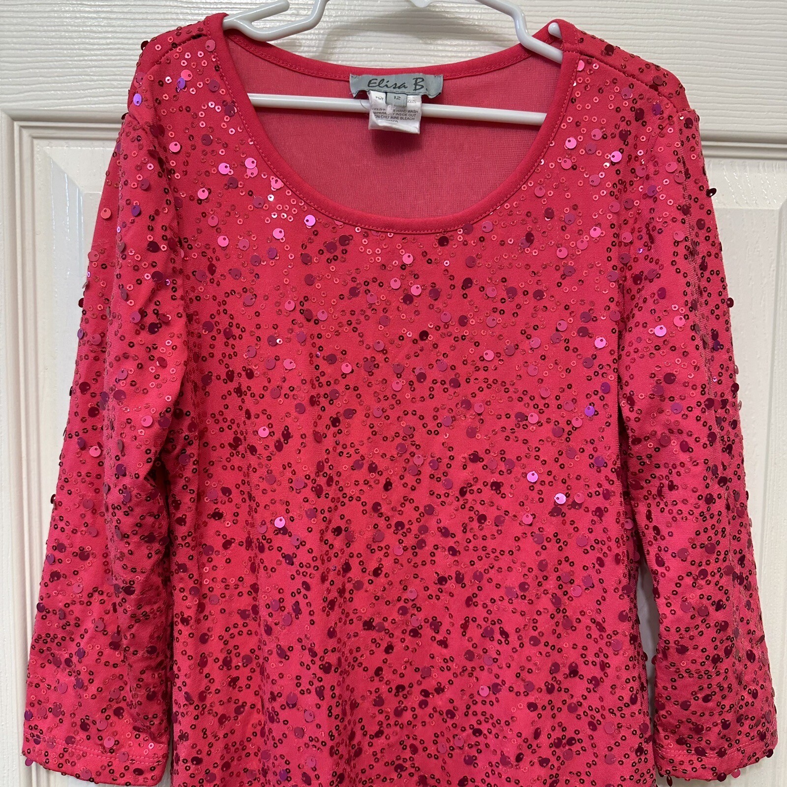 как выглядит Elisa B. Girls Pink 3/4 Sleeve Sequin Dress Size 12 фото