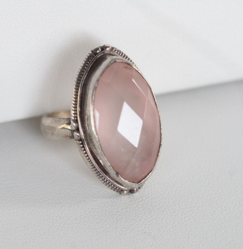 как выглядит Vintage Sterling Silver Pink Quartz Faceted Marquise Ring Size 7.75 фото