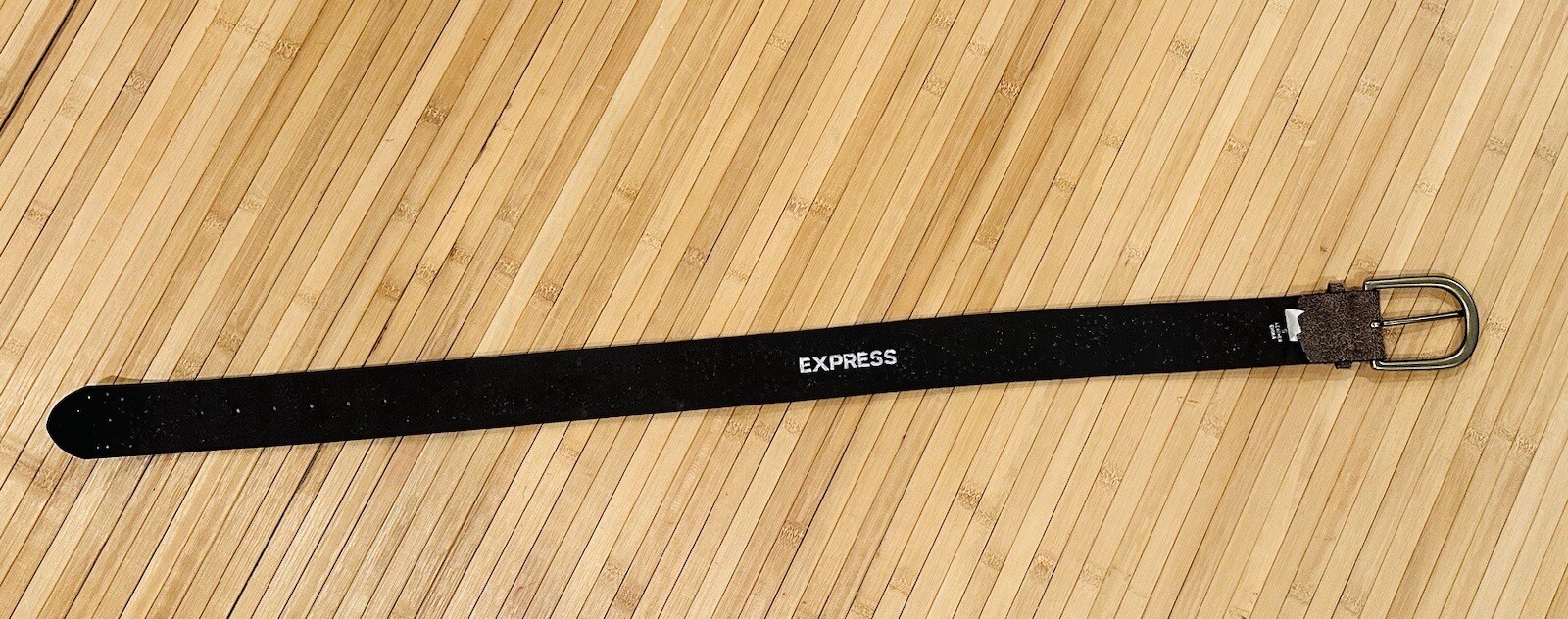 Express Women s Brown Leather Studded Brass Buckle Belt Sz S 27.5 - 32