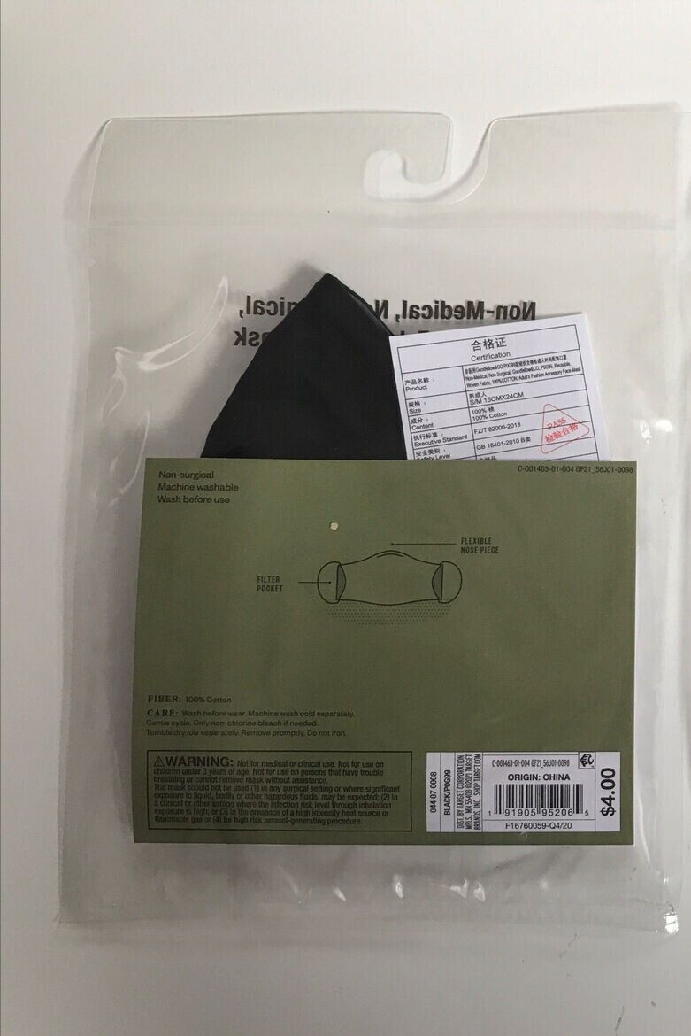 как выглядит One Goodfellow Co 2 Pack Adult Reusable Fabric Face Mask S/M Black New Sealed фото