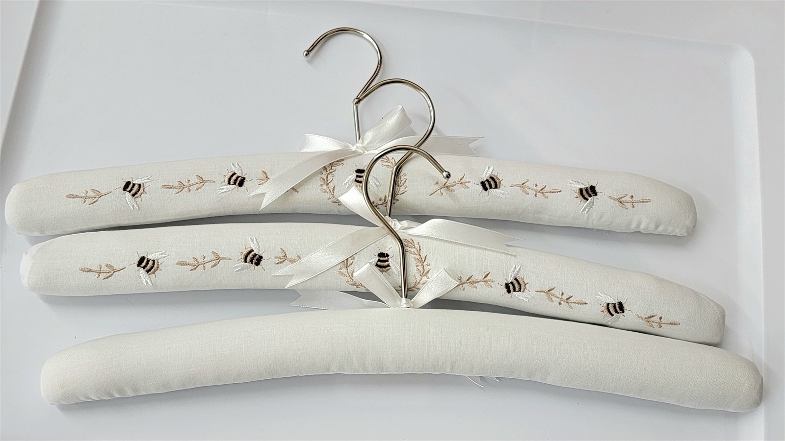 Victorian Trading 3 Embroidered Queen Bee Laurel Leaf Linen Satin Hangers 23D