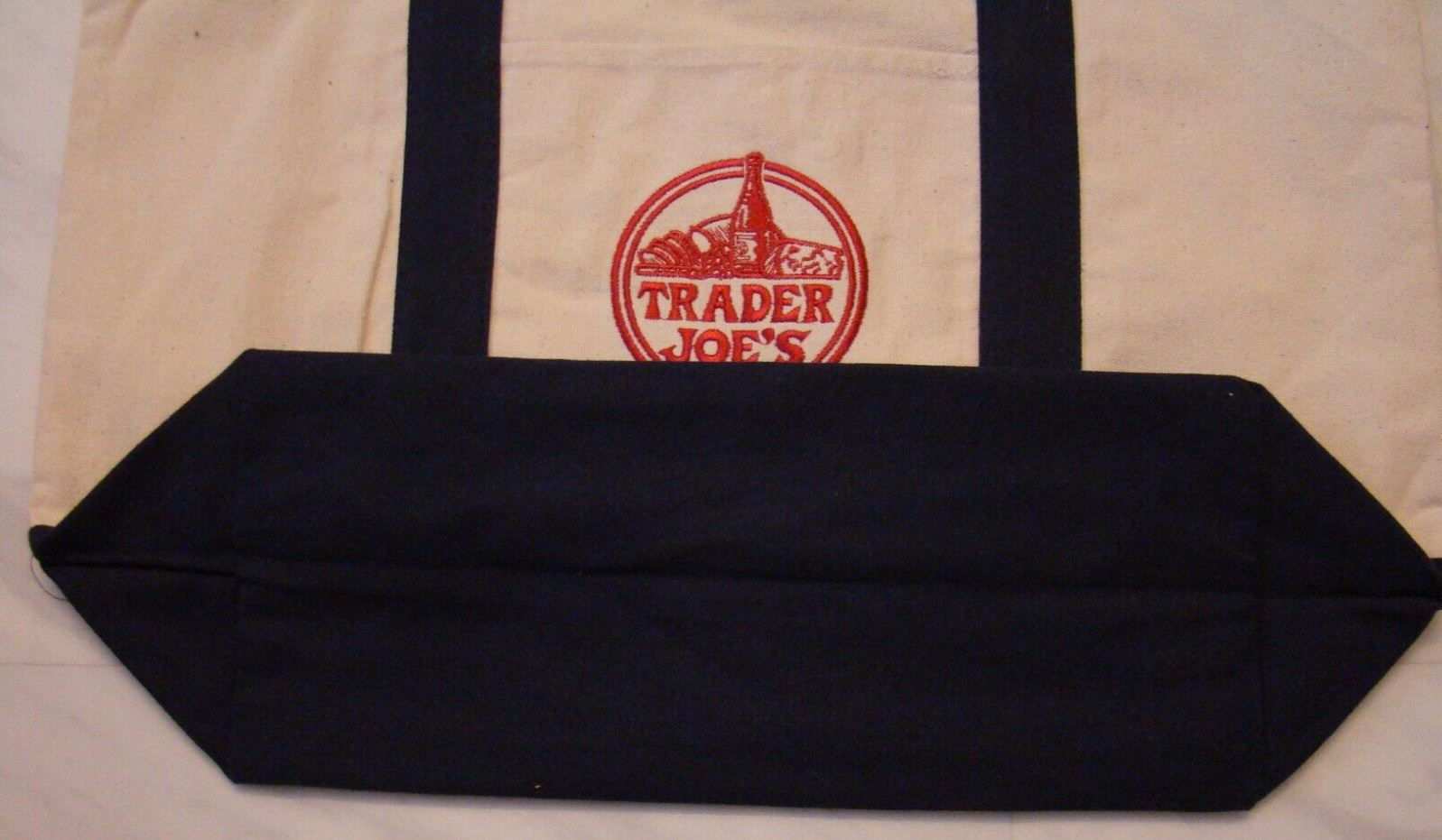 New Trader Joe's Heavy Duty Canvas Blue Red Reusable Shopping Large Tote Bag