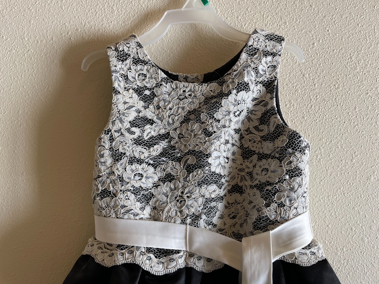 как выглядит NEW girls Us Angels bridesmaid flower girl dress size 6 black lace bodice фото