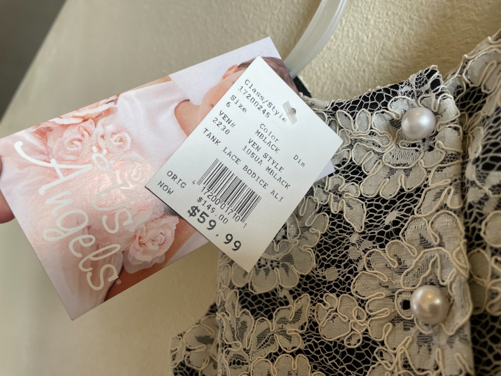 NEW girl's Us Angels bridesmaid flower girl dress size 6 black lace bodice