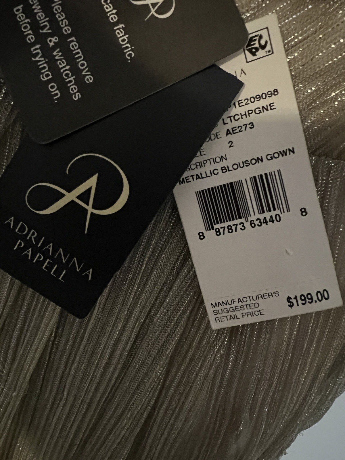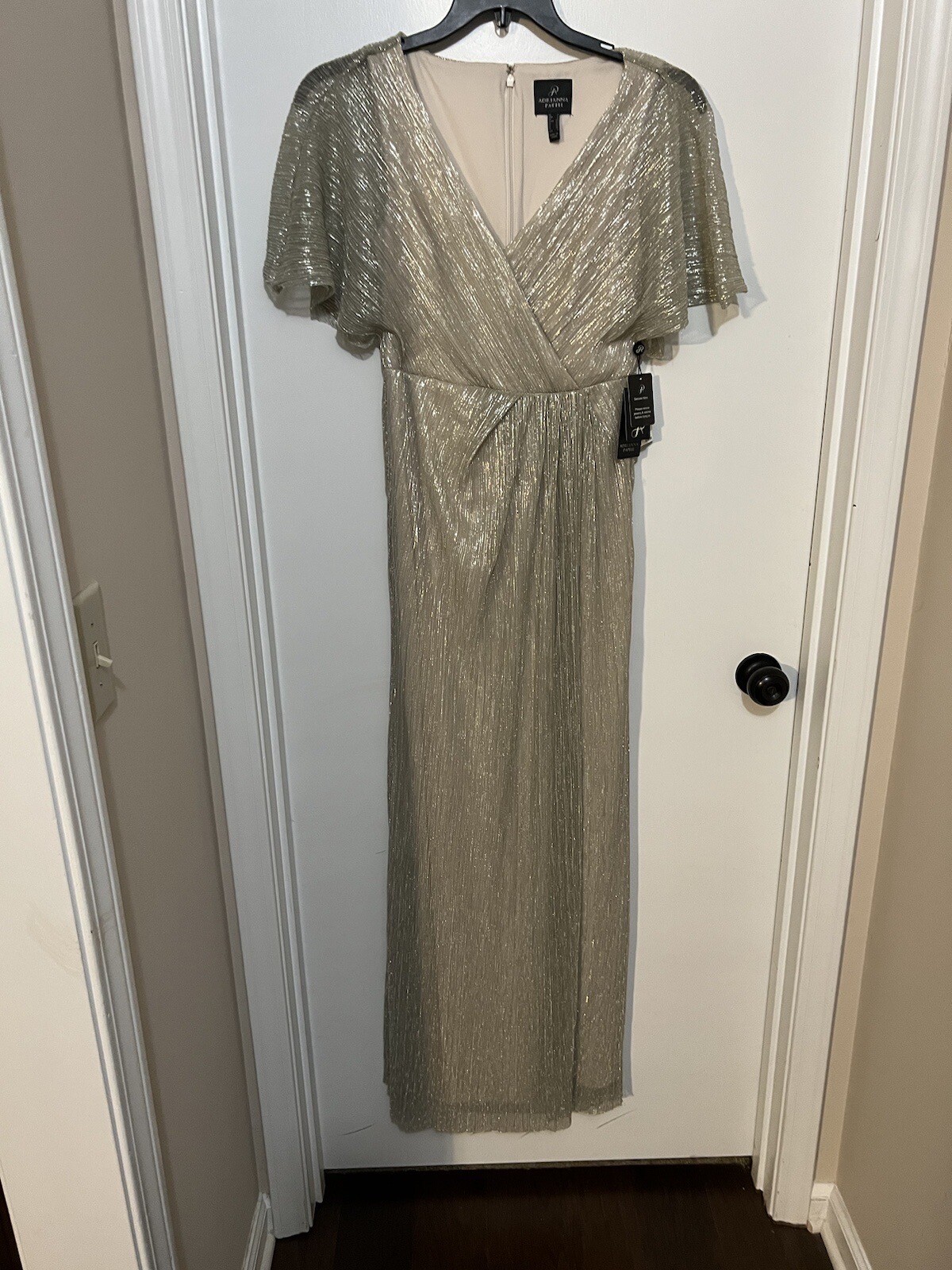 как выглядит Adrianna Papell Pleated Metallic Gown, Champagne, Size 2, MSRP 199 фото