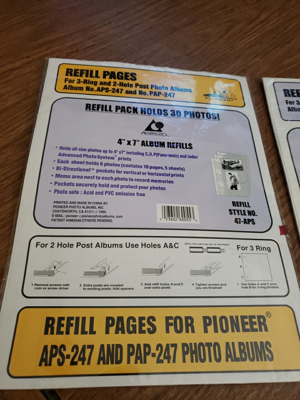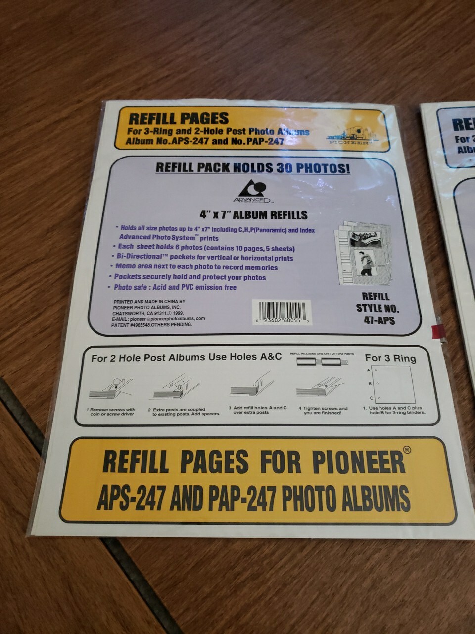 Pioneer Photo Album Refill Packs 47-APS 4x7 And 57-APS for APS-247 Albums New