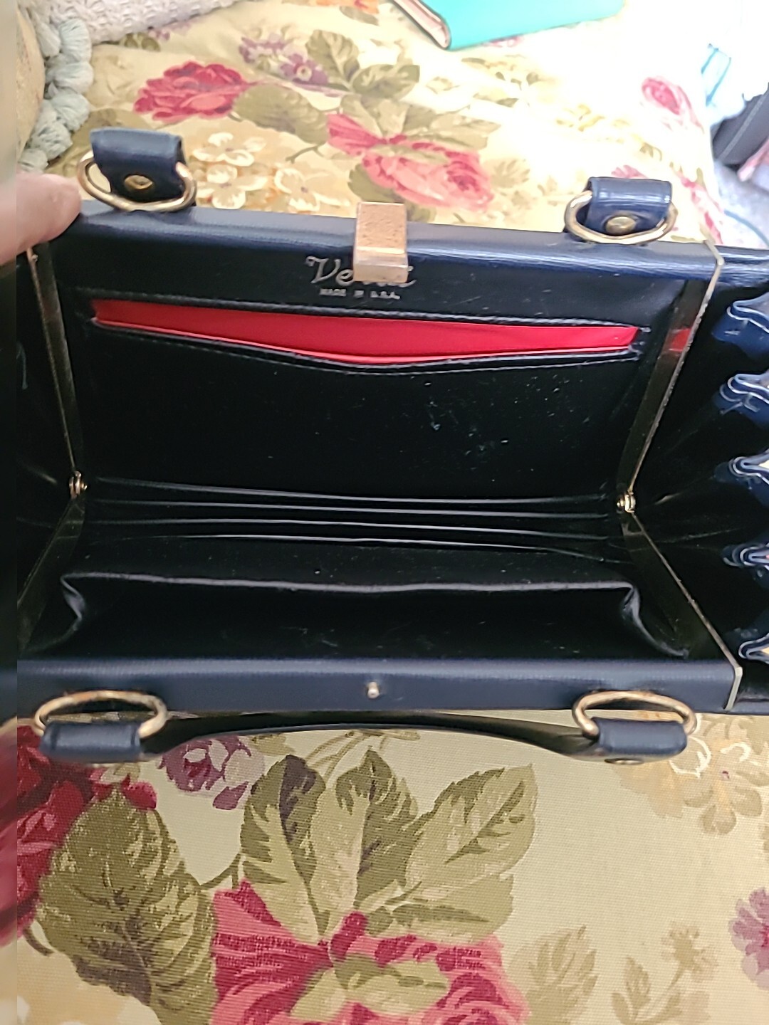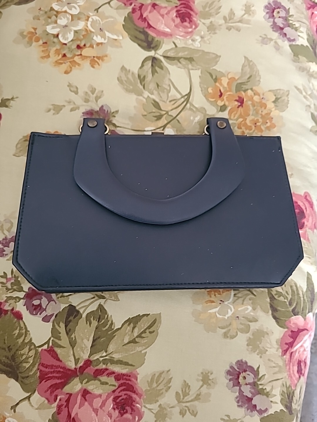 как выглядит Vintage Navy Handbag With Brass Accents 10x6x2 фото