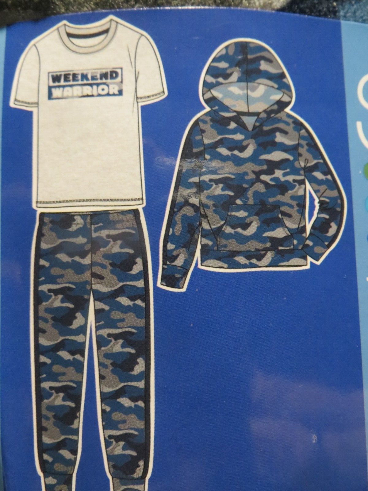 как выглядит NEW SAINT EVE BOYS 3-PIECE SLEEPWEAR SET PAJAMAS BLUE CAMO 5-6, 7-8 фото
