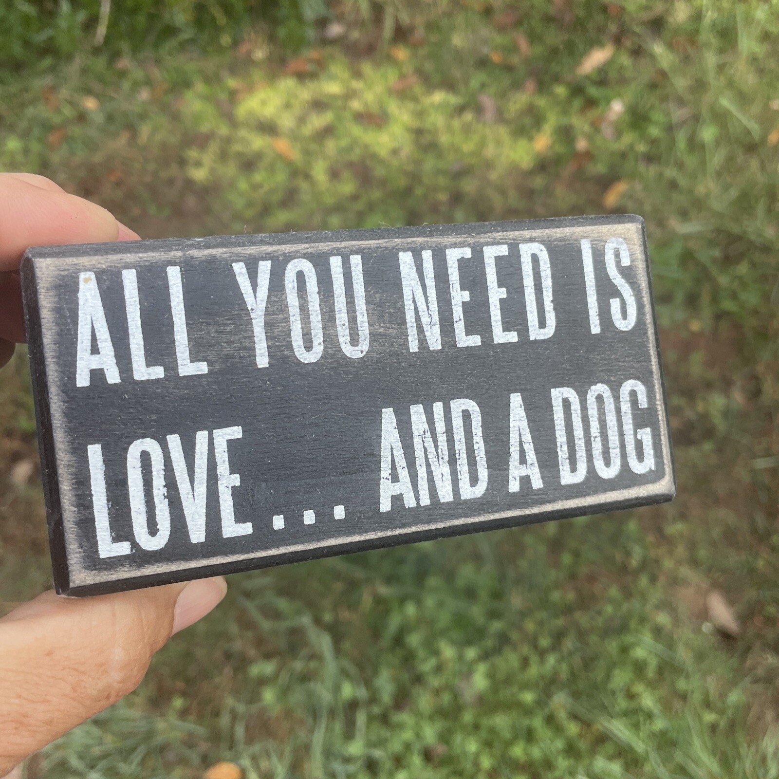 • Primitive by Kathy ALL YOU NEED IS LOVE A DOG Wood Plaque Shelf Sign blt11m2