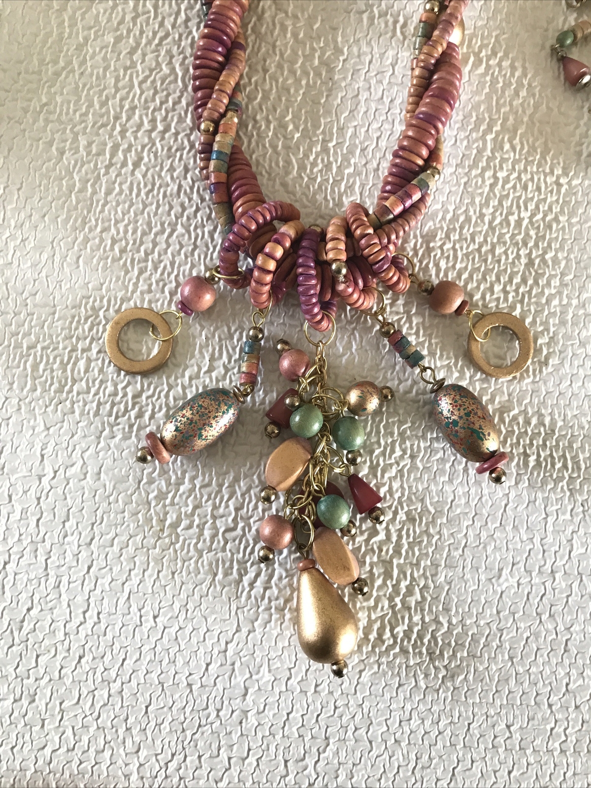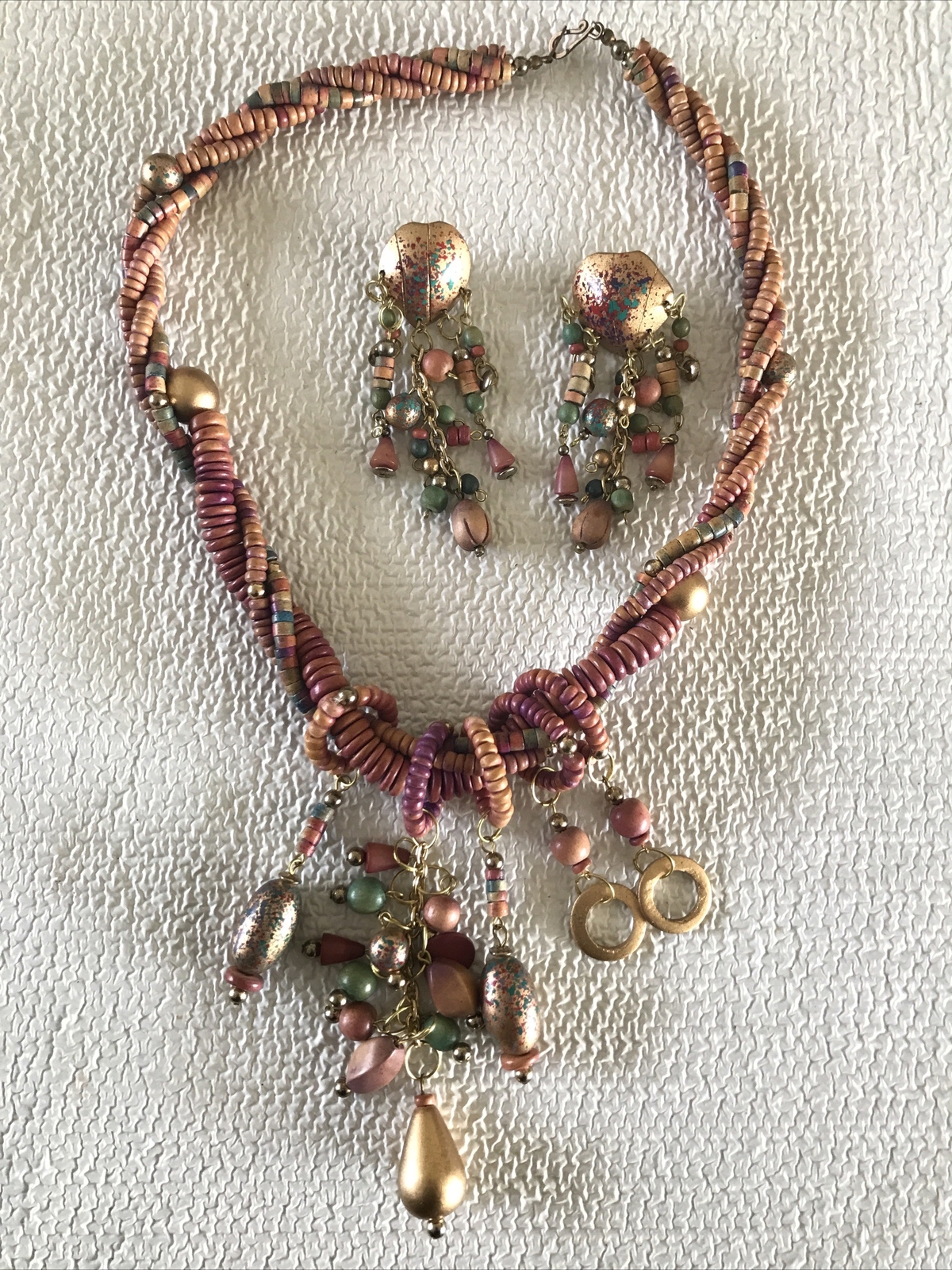 как выглядит Unbranded Set Wood Bead Necklace Matching Dangle Drop Earrings VGUC фото