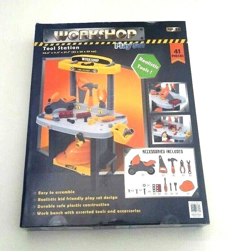 Workshop Tool Station Repair Bench Kid 41 Piece Playset Yellow / Black Age 3