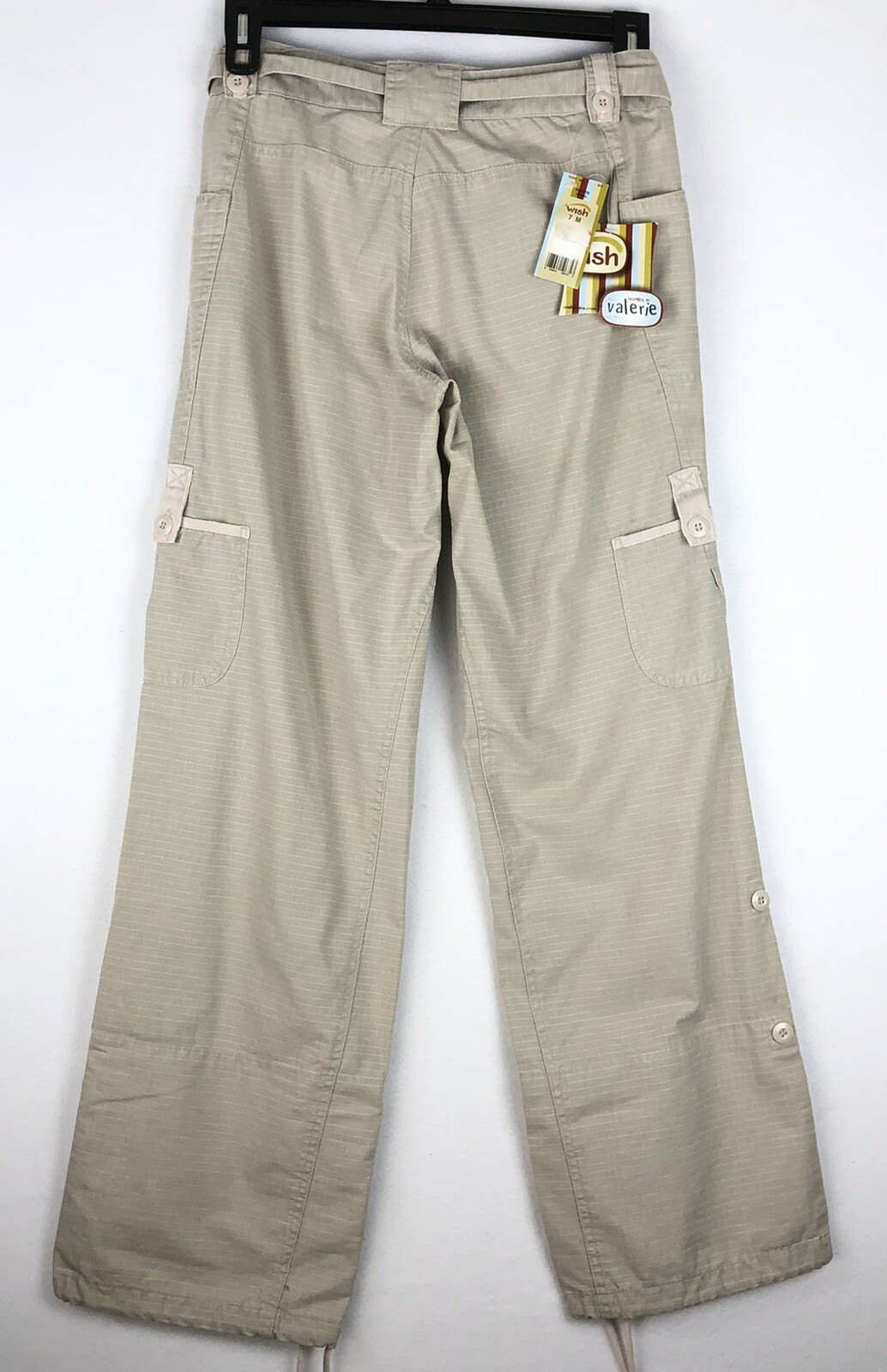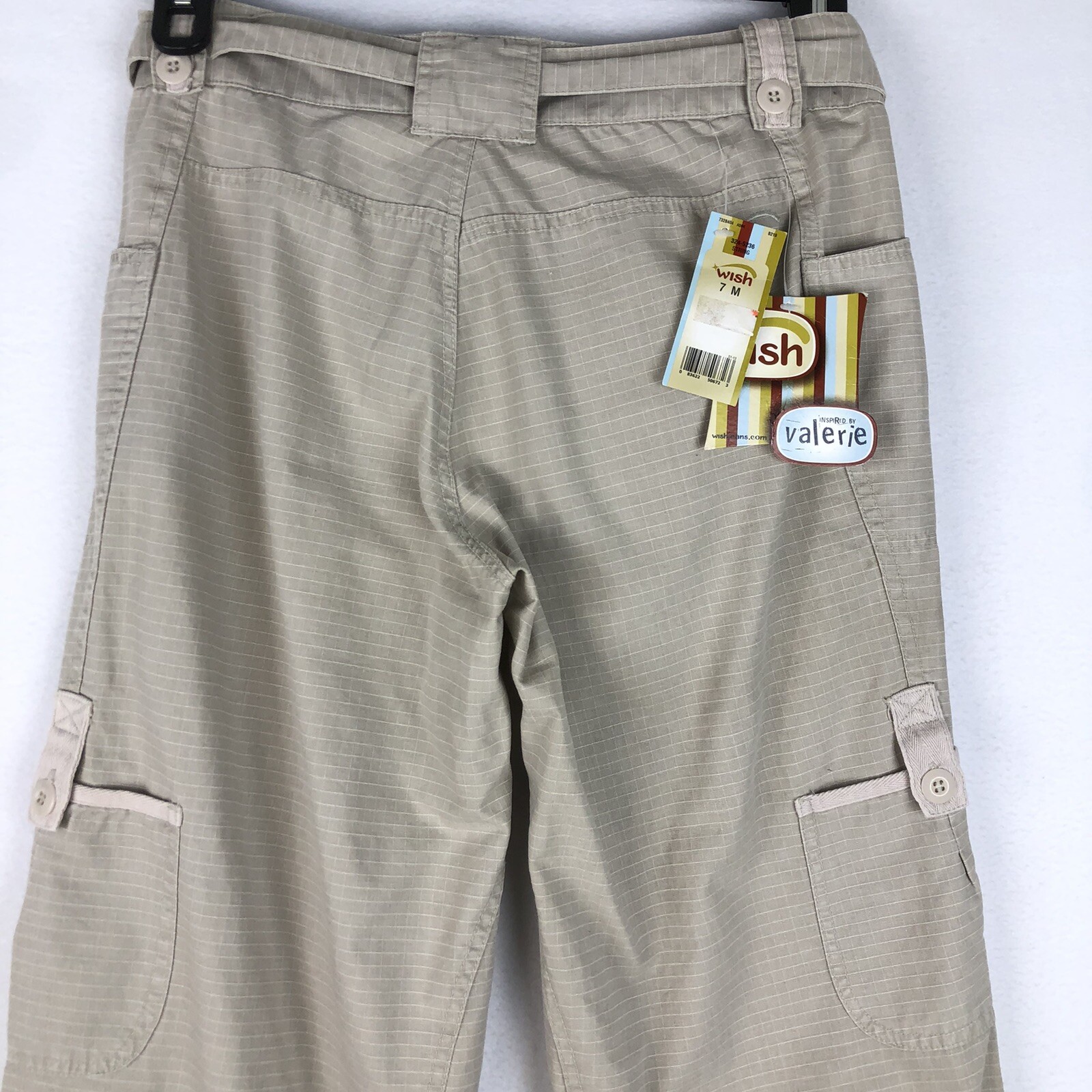 Vintage Wish Beige Khakis/cargo pants wide leg, belted size 7 Juniors Y2K