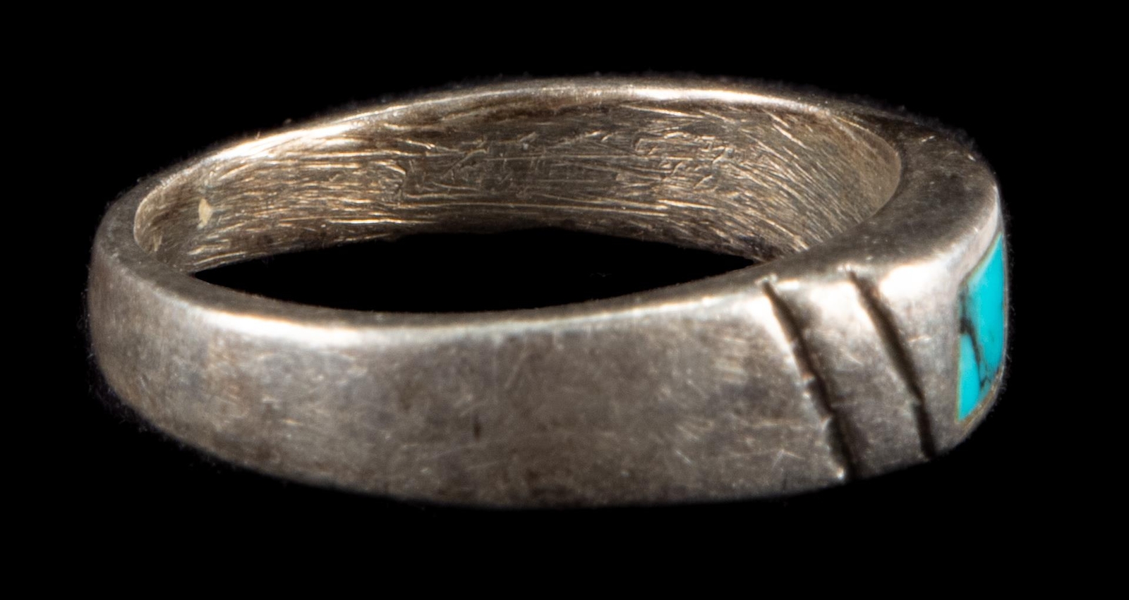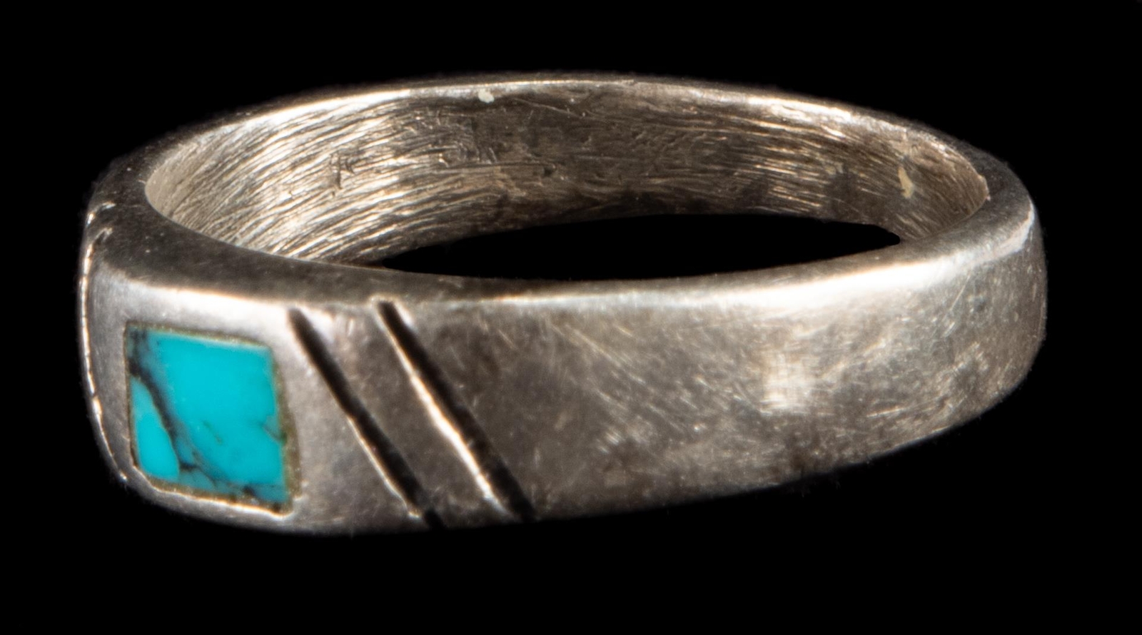Sterling Silver Native American Ring Size 5 Turquoise Abstract Design 1.7gr